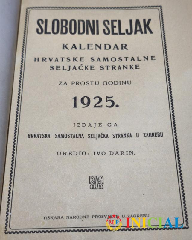 Slobodni seljak,kalendar hrvatske seljacke samostalne stranke 1925,I.Darin,Zagreb,str.80.