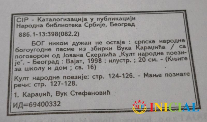 Pjesme iz opste nacionalne istorije,M.P.Mandic,1967.god,str.32.