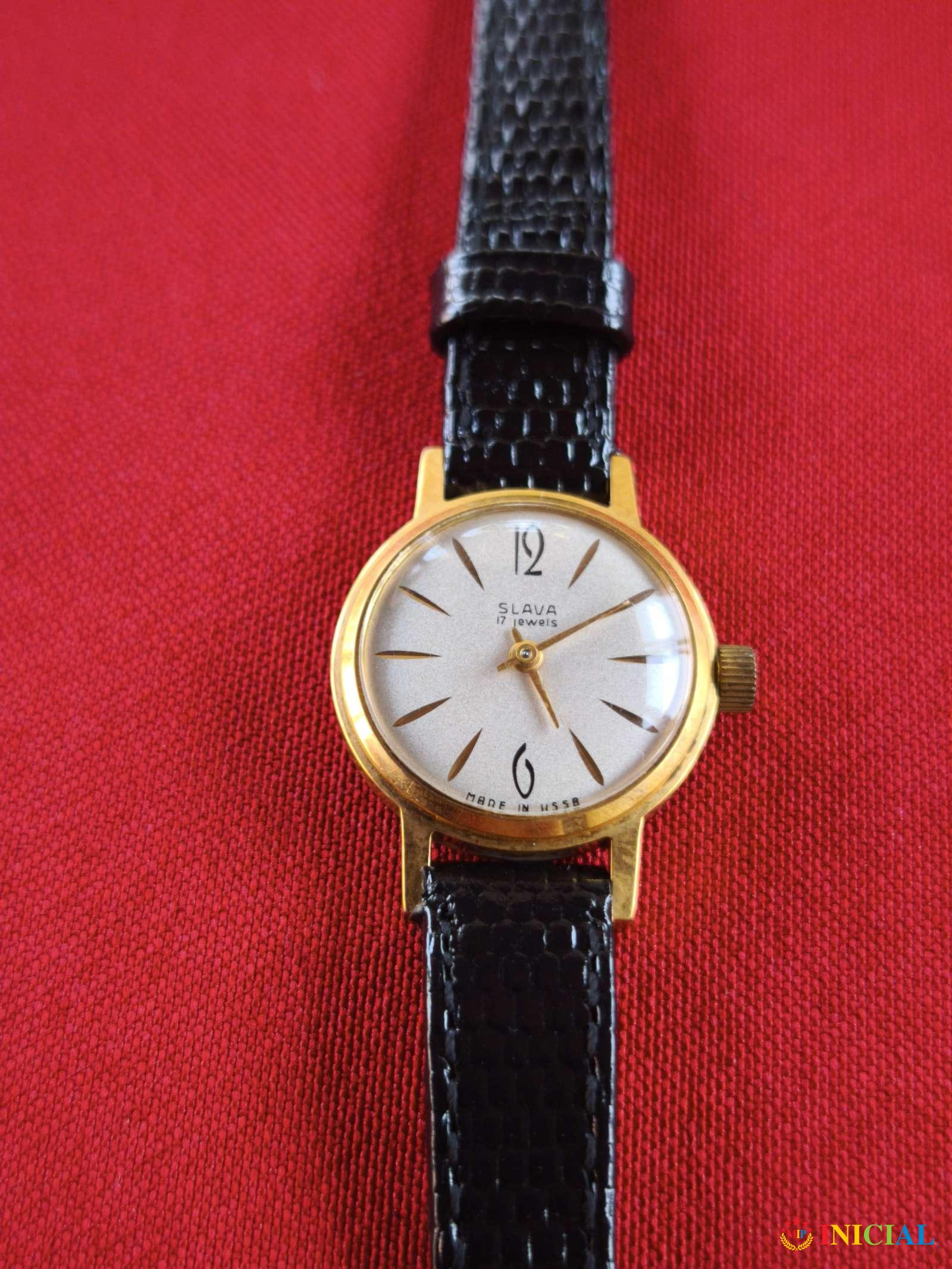 Ženski,pozlaćen sat Slava,ima 17 Rubina,kozni kais,made in USSR.
