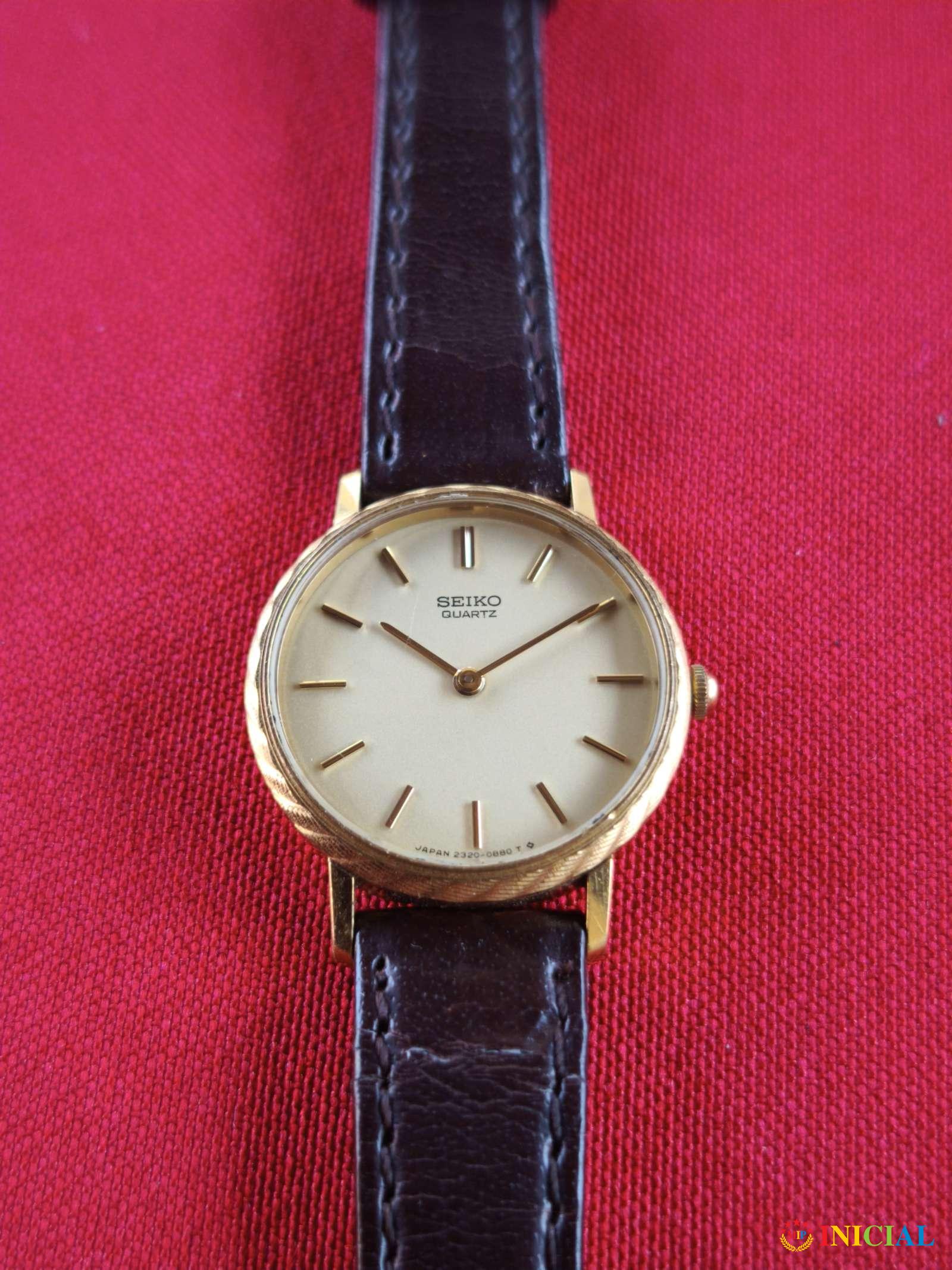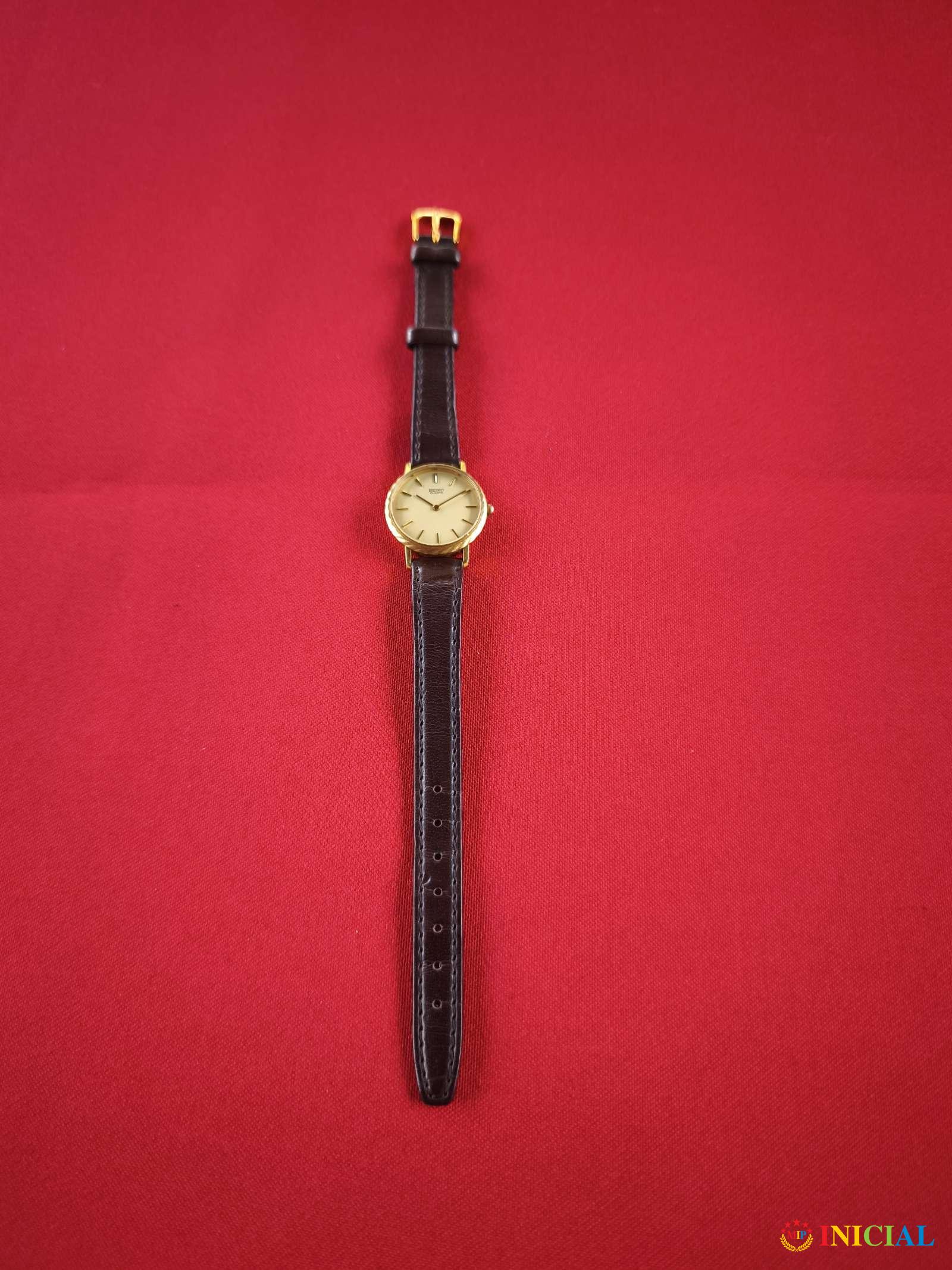 Ženski,pozlaćen,kvarcni sat Seiko,kozni kais,made in Japan.