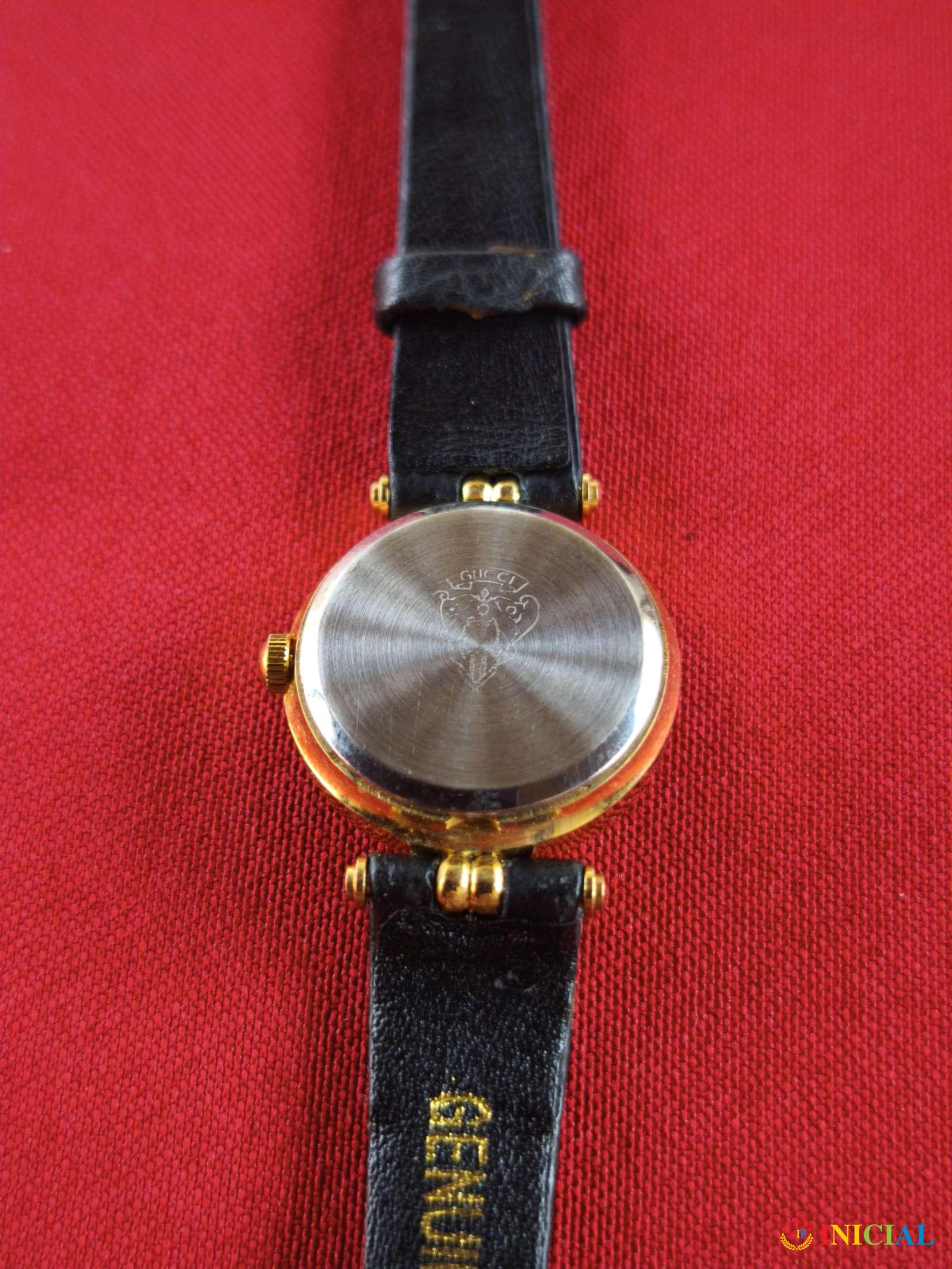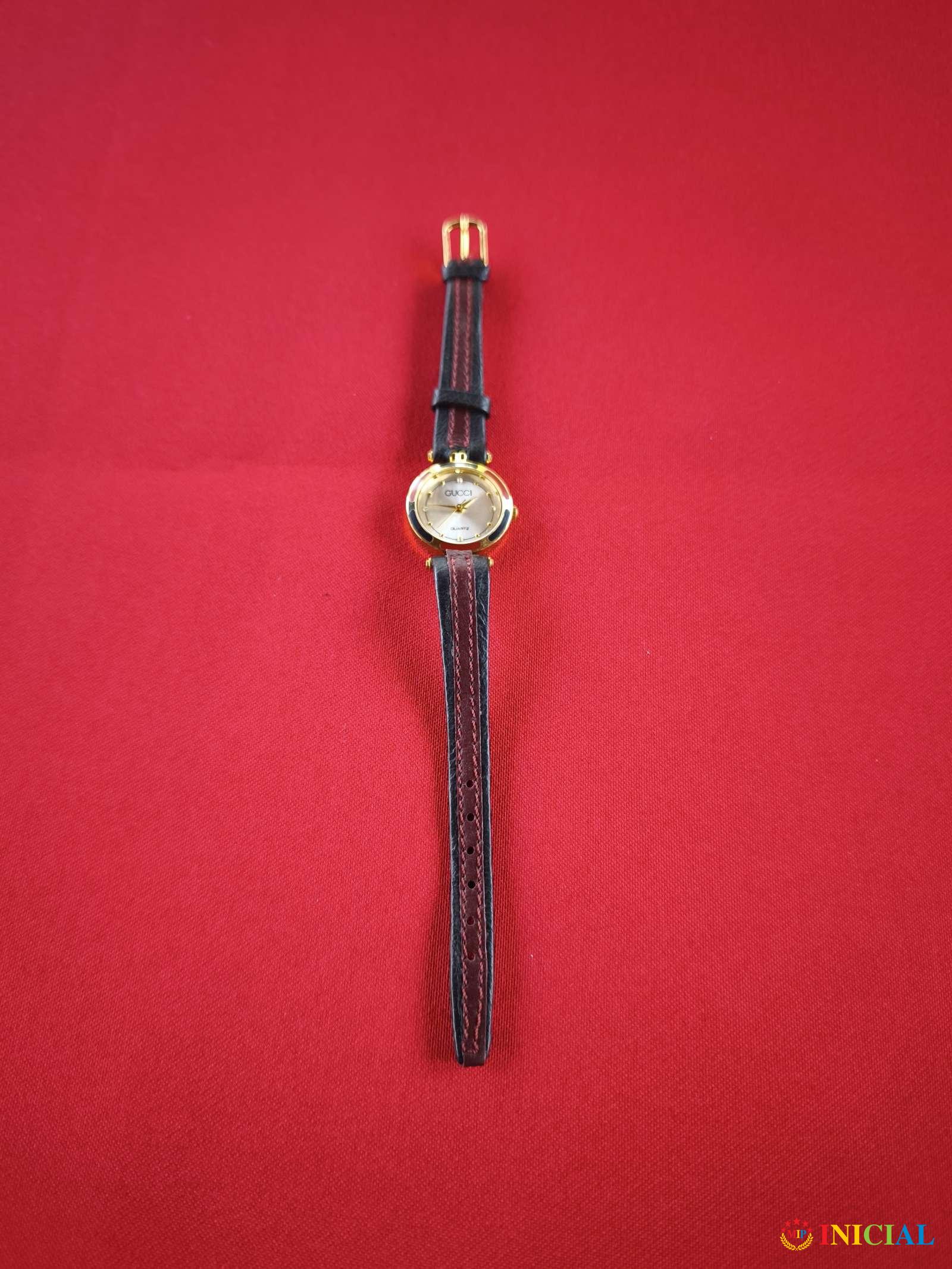 Ženski,pozlaćen,kvarcni sat Gucci,kozni kais,made in Swiss.