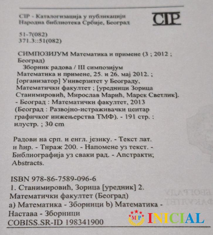 Zbornik radova,III simpozijum Matematika i primene.
