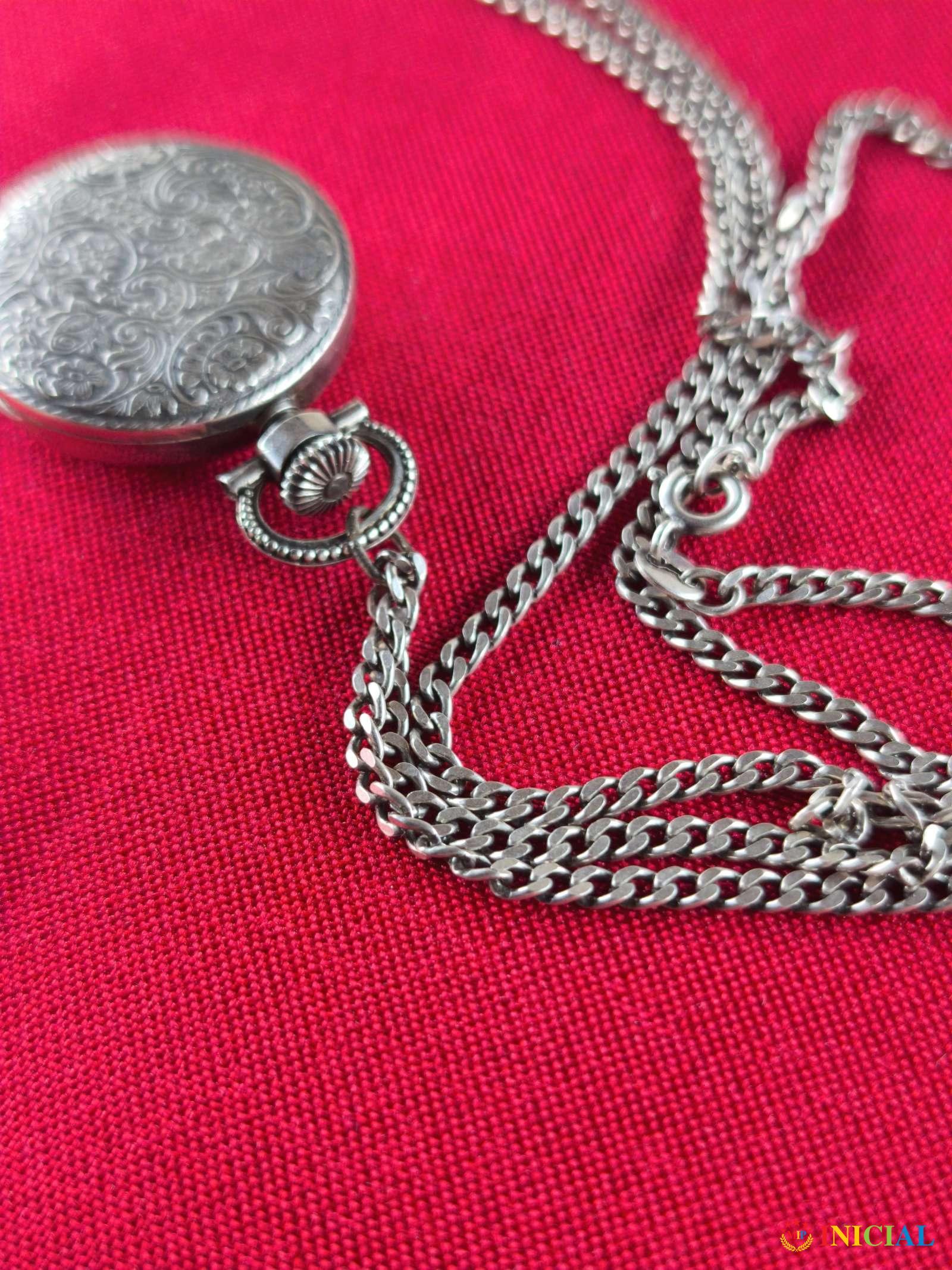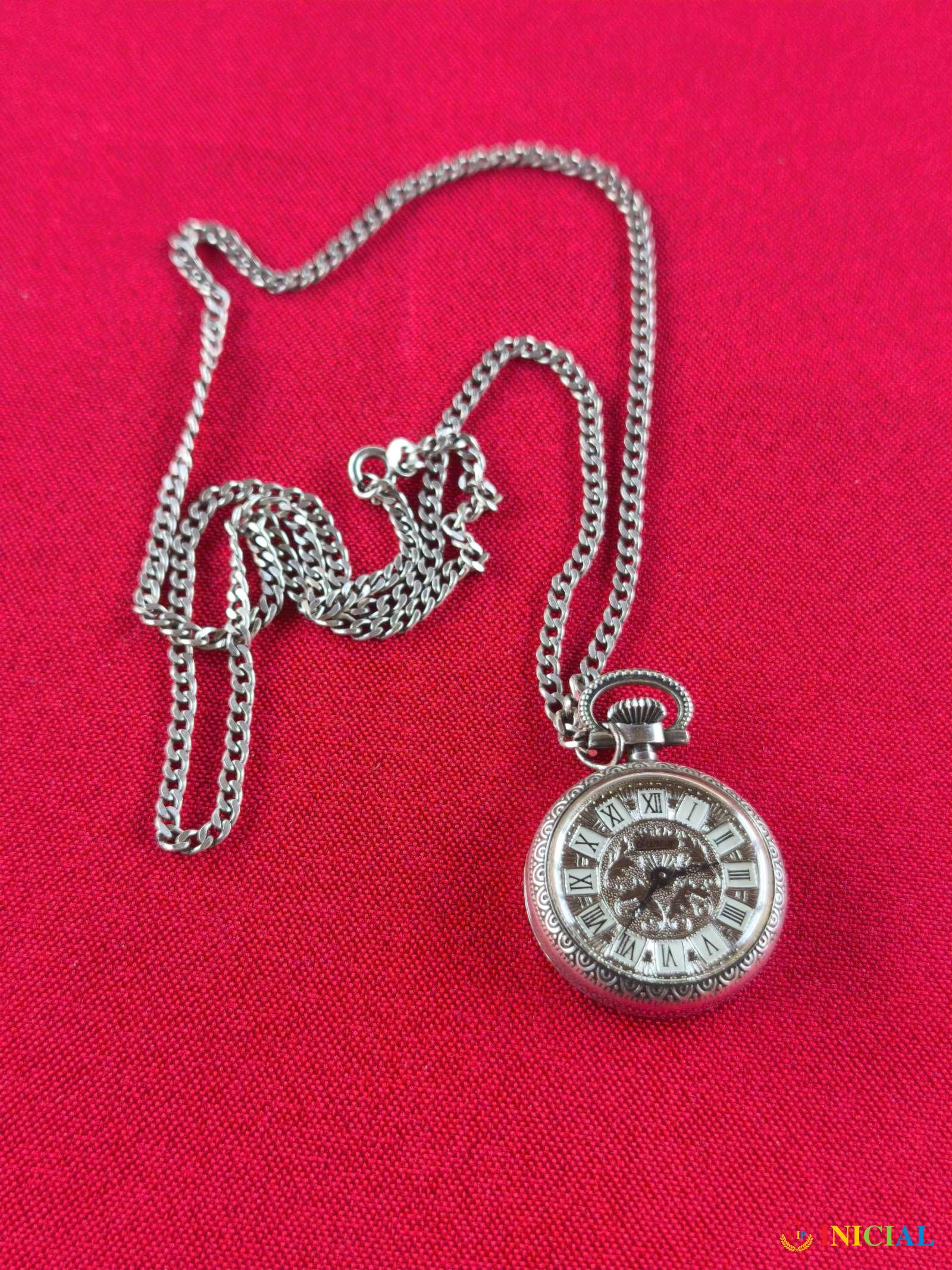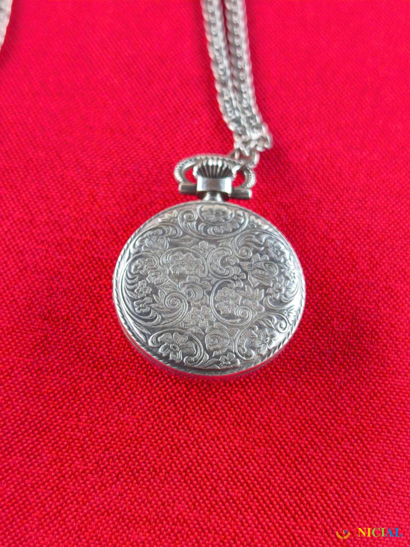 Srebrni ženski lancic sat Geneve incabloc,17 Rubina,dužina 45cm,tezina 44,6gr,samo poklopac brojčanika nije srebro,ka