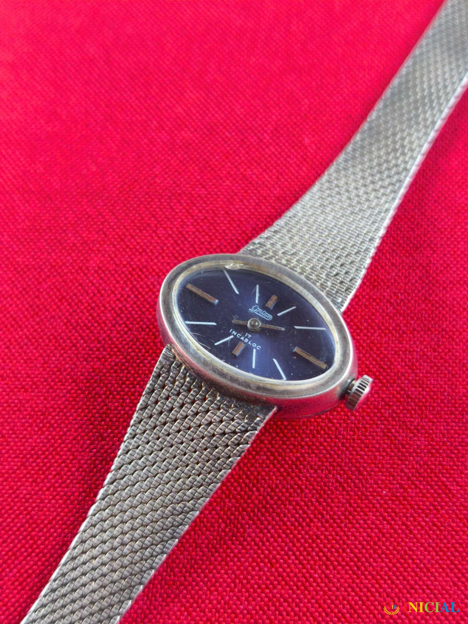 Srebrni ženski sat Grona incabloc,17 Rubina,dim.brojcanika 24 x 16mm,zig 835,tezina 24,7gr,ispravan.