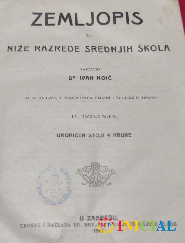 Zemljopis za nize razrede srednjih skola,Dr.I.Hoic,Zagreb,1916.god,str.296,tvrdi povez.