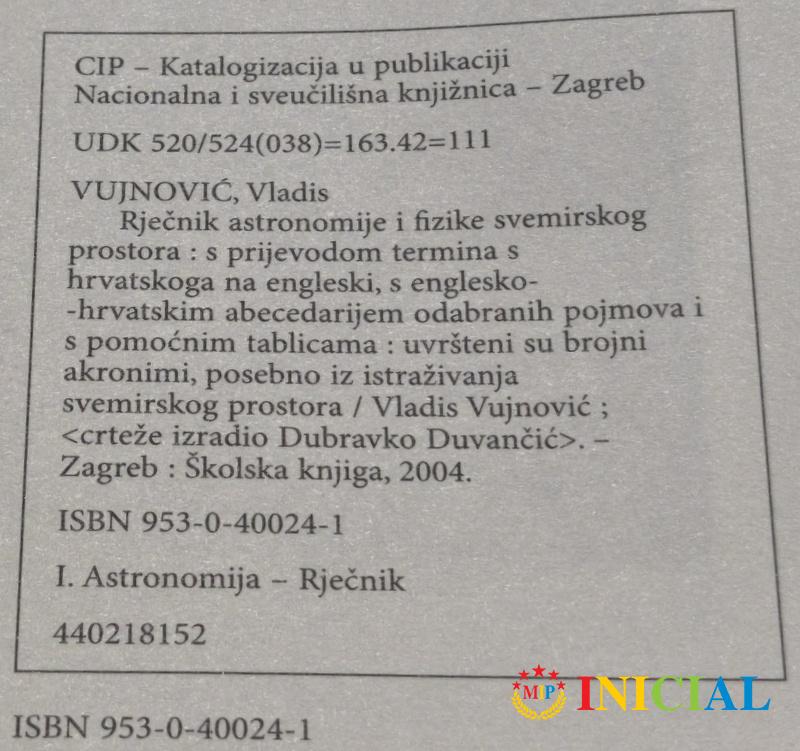 Rjecnik astronomije i fizike svemirskog prostora.