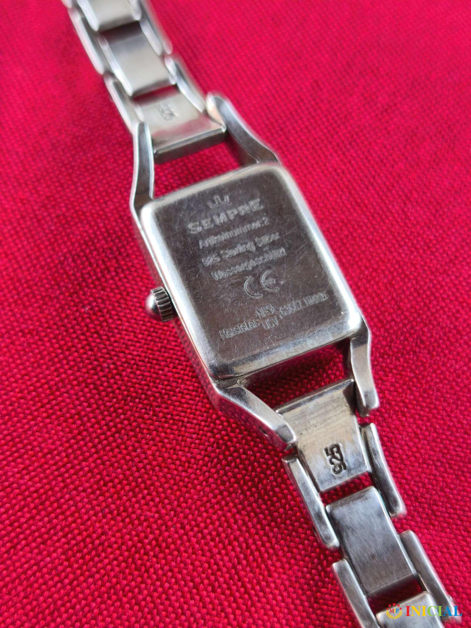 Srebrni(Sterling Silber)ženski,kvarcni sat Sempre,zig 925,dim brojčanika 20 x 16mm,tezina 35,3 gr.