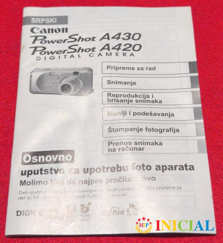 Digitalni foto aparat Canon A460 sa uputstvom (od starijih modela,a slicni su).