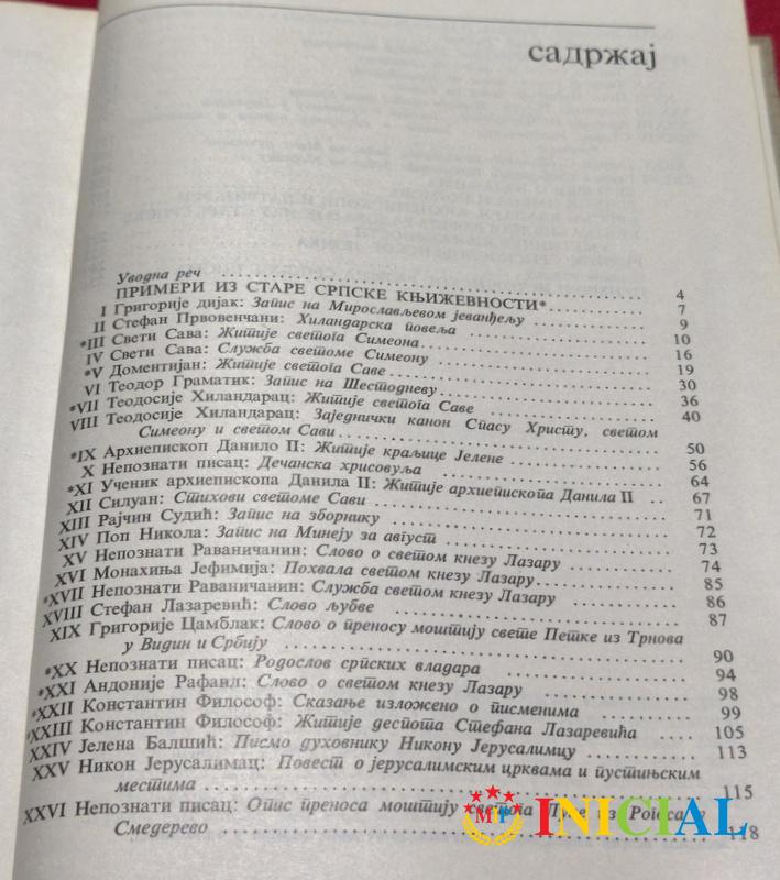 Primeri iz stare srpske knjizevnosti,sastavio Dj.Trifunovic,Beograd,1975.god,str.250 + 32 primera pisama,tvrdi povez.