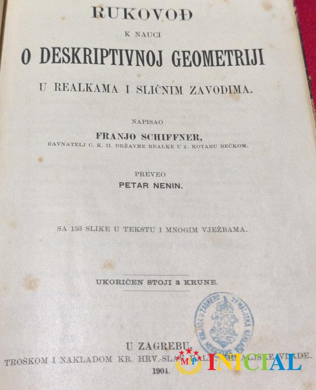 Rukovodj k nauci o deskriptivnoj geometriji,F.Schiffner,Zagreb,1904.god,str.171,tvrde korice.