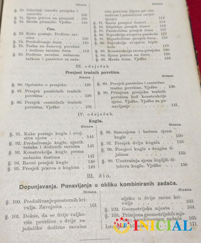 Geometrija za vise razrede gimnazija i realke,Mocnik & Spilman,Beograd,1914.god,str.331,tvrdi povez.