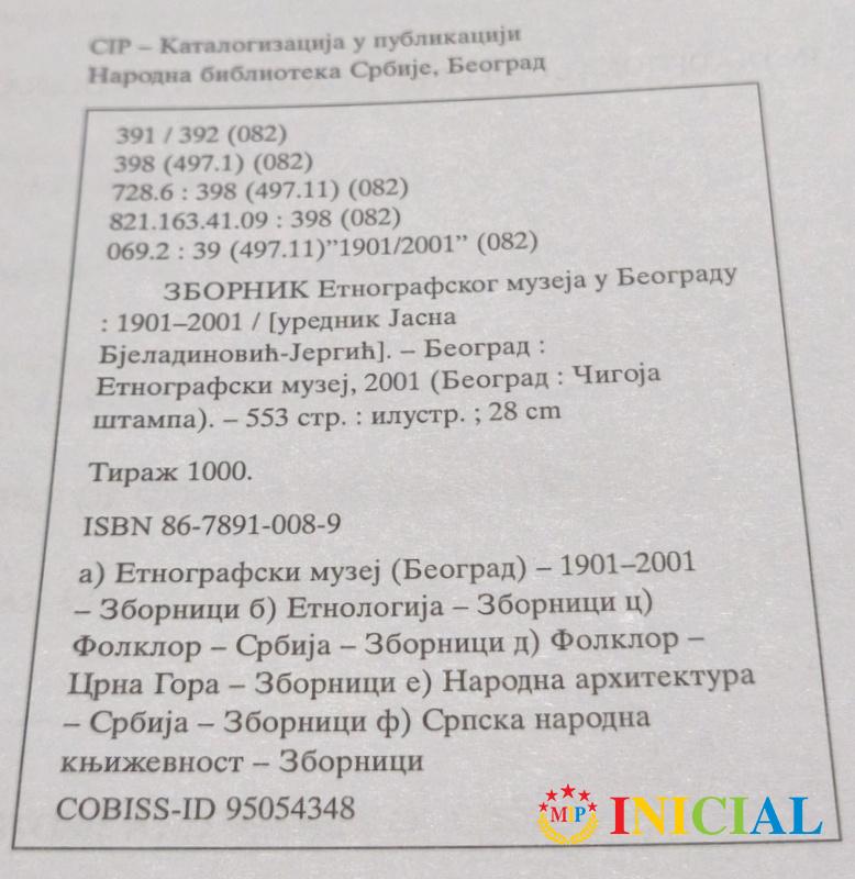 Zbornik etnografskog muzeja u Beogradu 1901 - 2001.