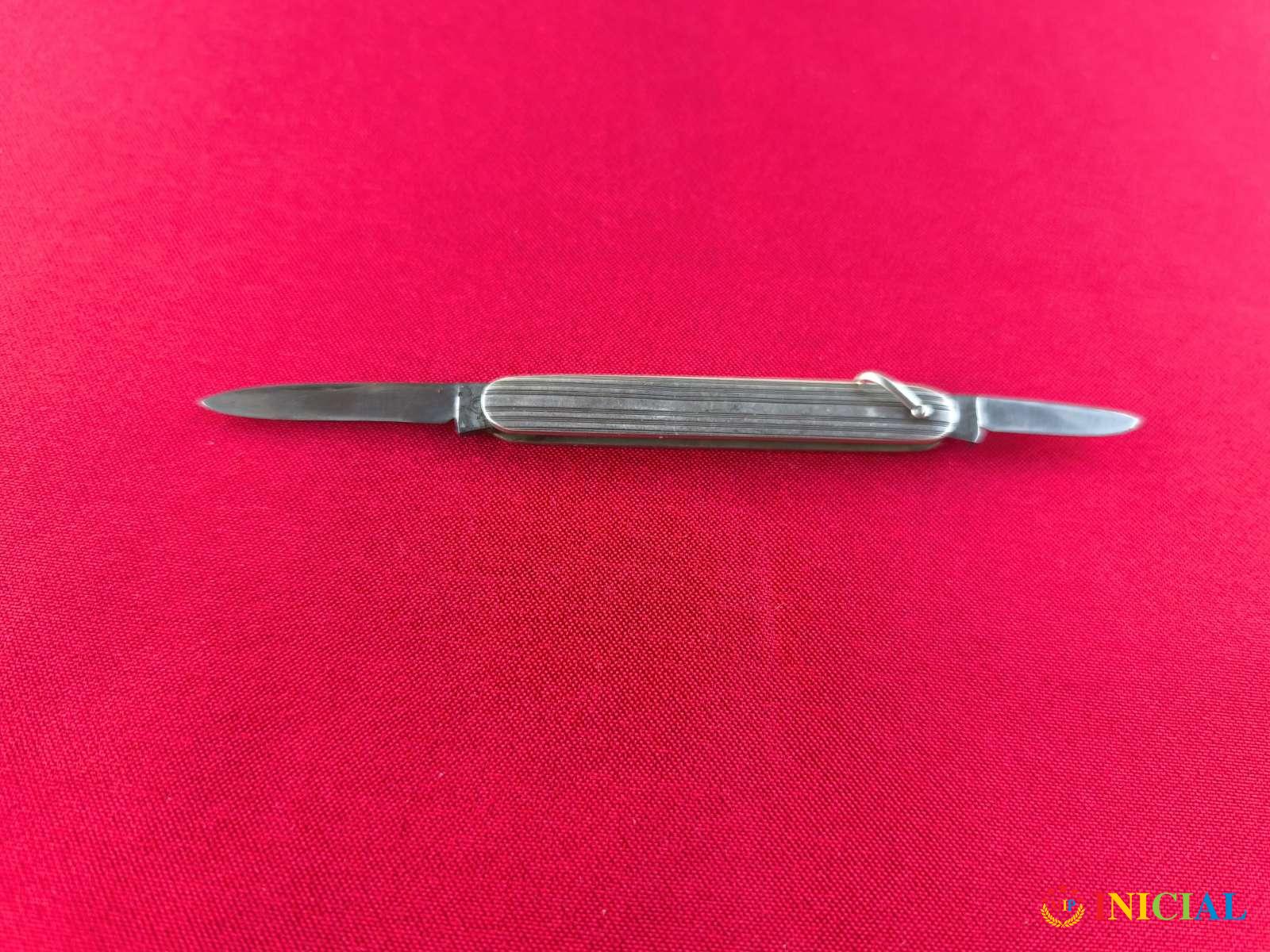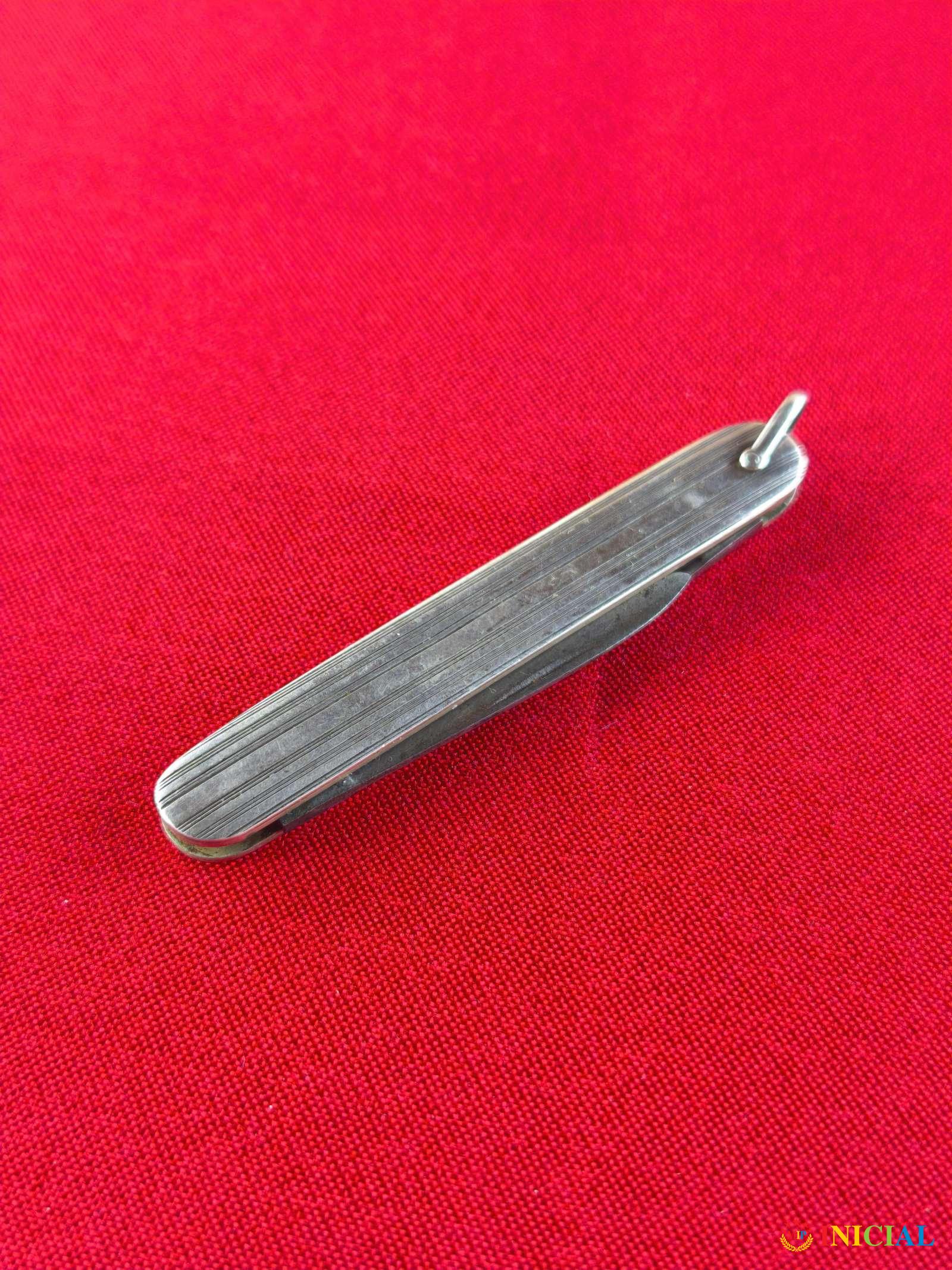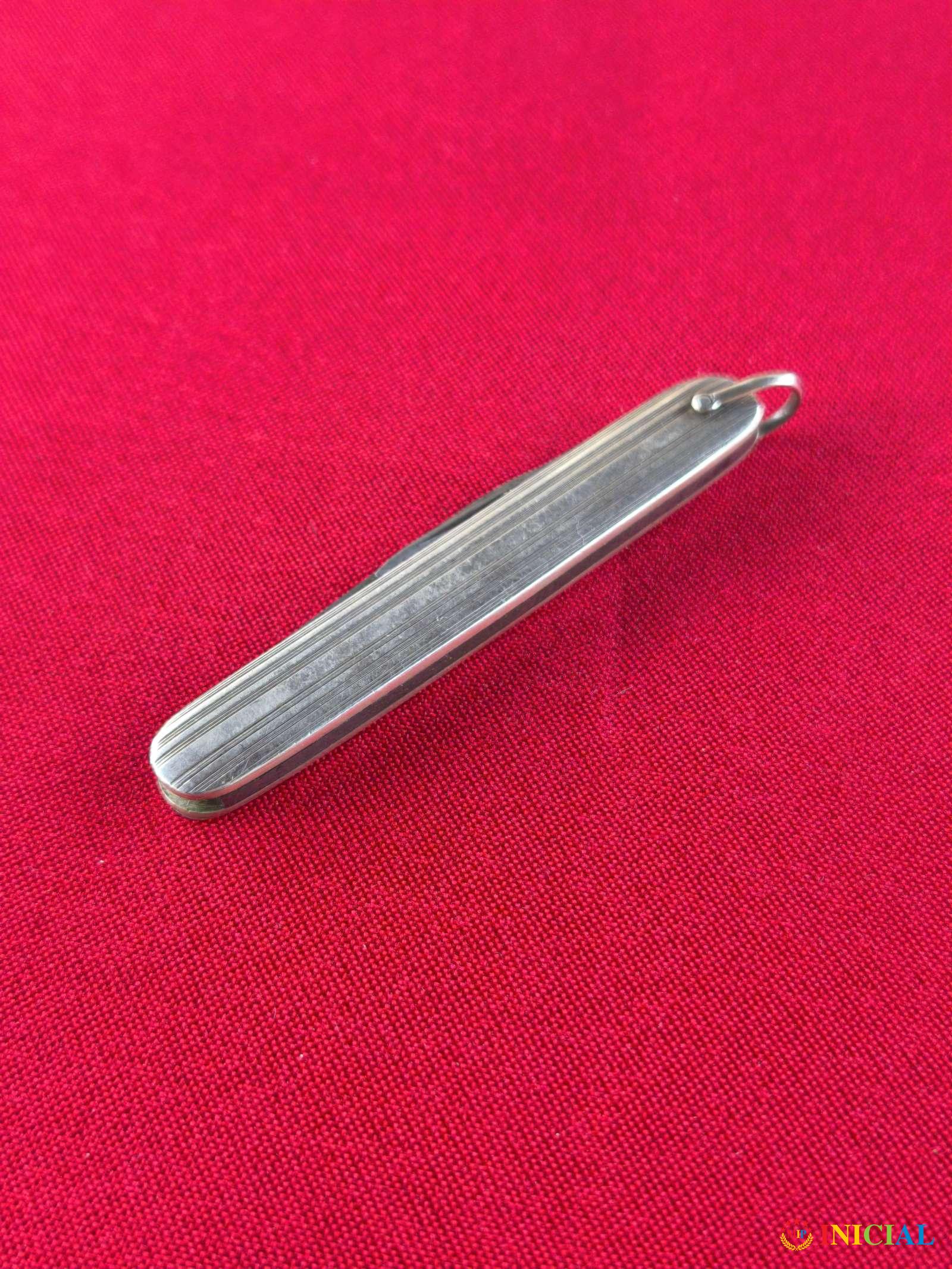 Srebrni nozic(samo pločice),dužina zatvorenog 73mm, jedno secivo 38mm,drugo 27mm.,zig 835,tezina 23,1gr.