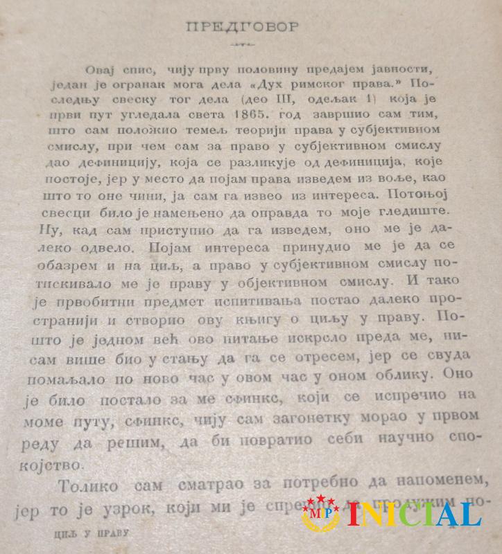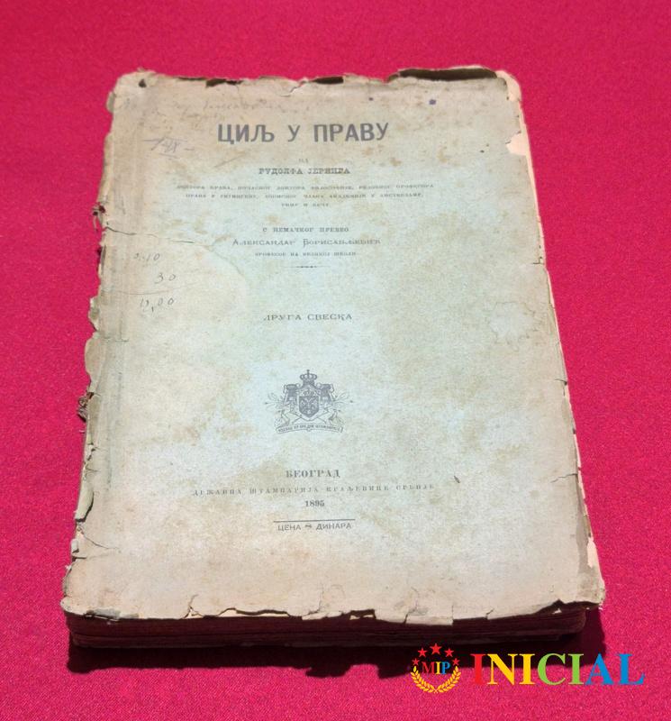 Cilj u pravu,Dr.prava,pocasni Dr.filozofije R.Jering,Beograd,1895.god,str.394,nedostaje zadnja korica,rikna ostecena !