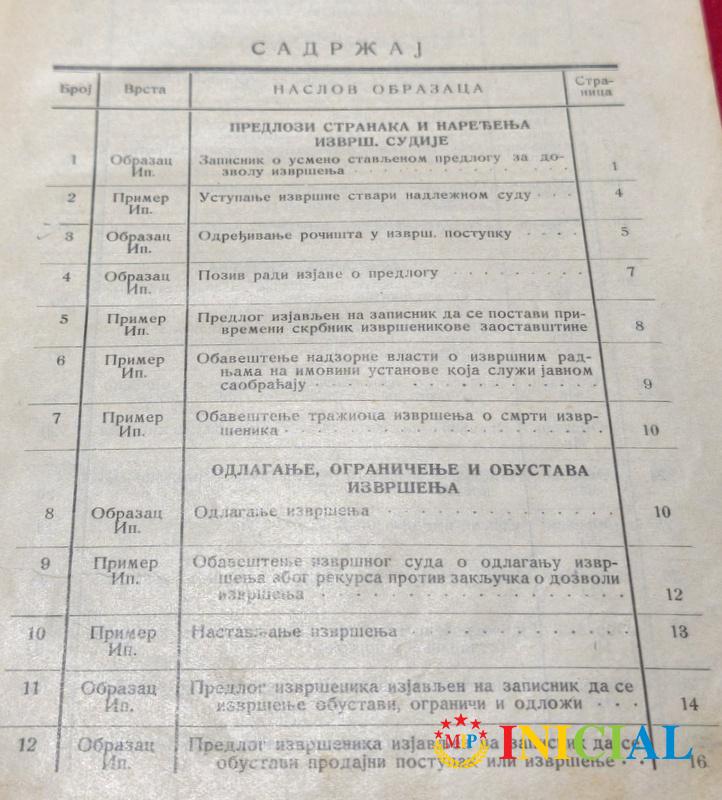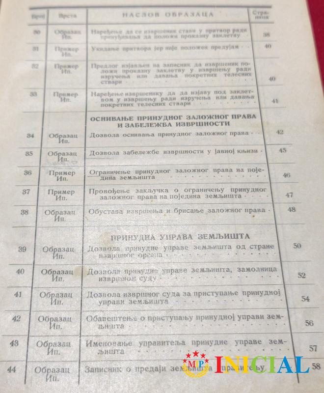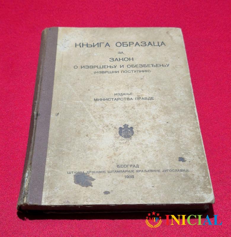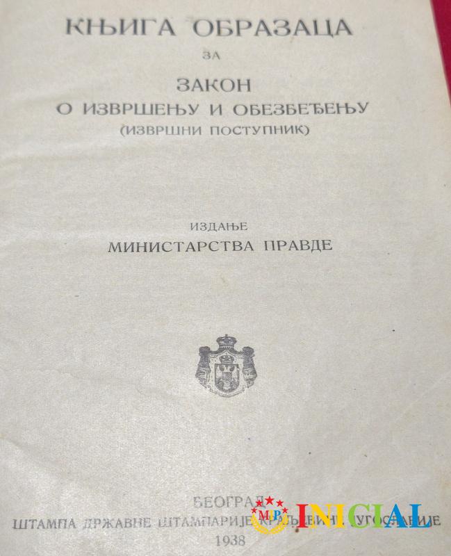 Knjiga obrazaca za zakon o izvrsenju i obezbedjenju,ministarstvo pravde,Beograd,1938.god,str.251,tvrde korice.