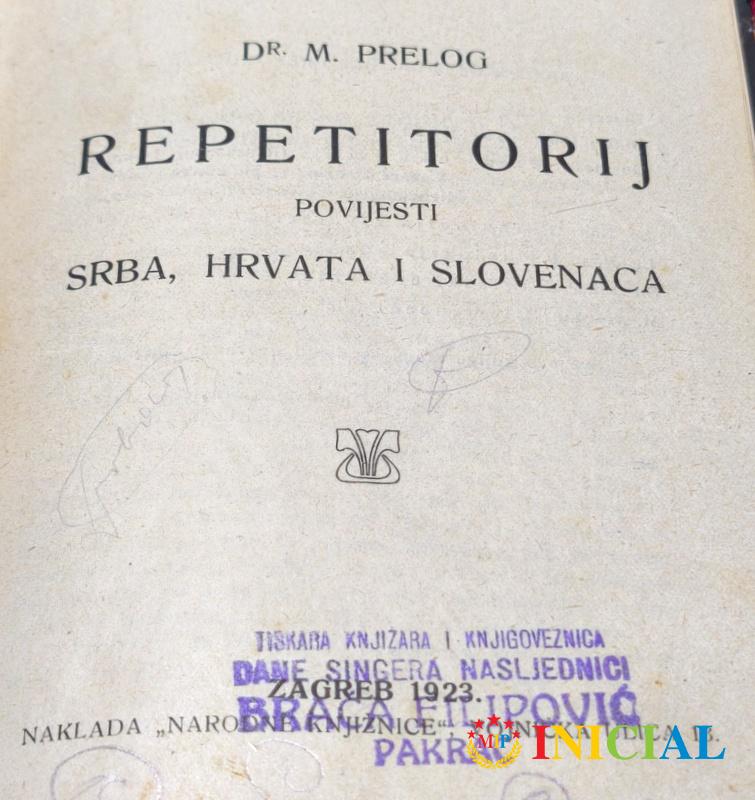 Repetitorij povijesti srba,hrvata i slovenaca,Dr.M.Prelog,Zagreb,1923.god,str.150,tvrdi povez.