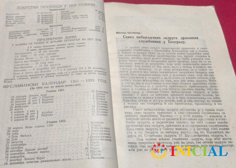 Kalendar Saveza nabavljackih zadruga drzavnih sluzbenika,Beograd,1933.god,str.144.