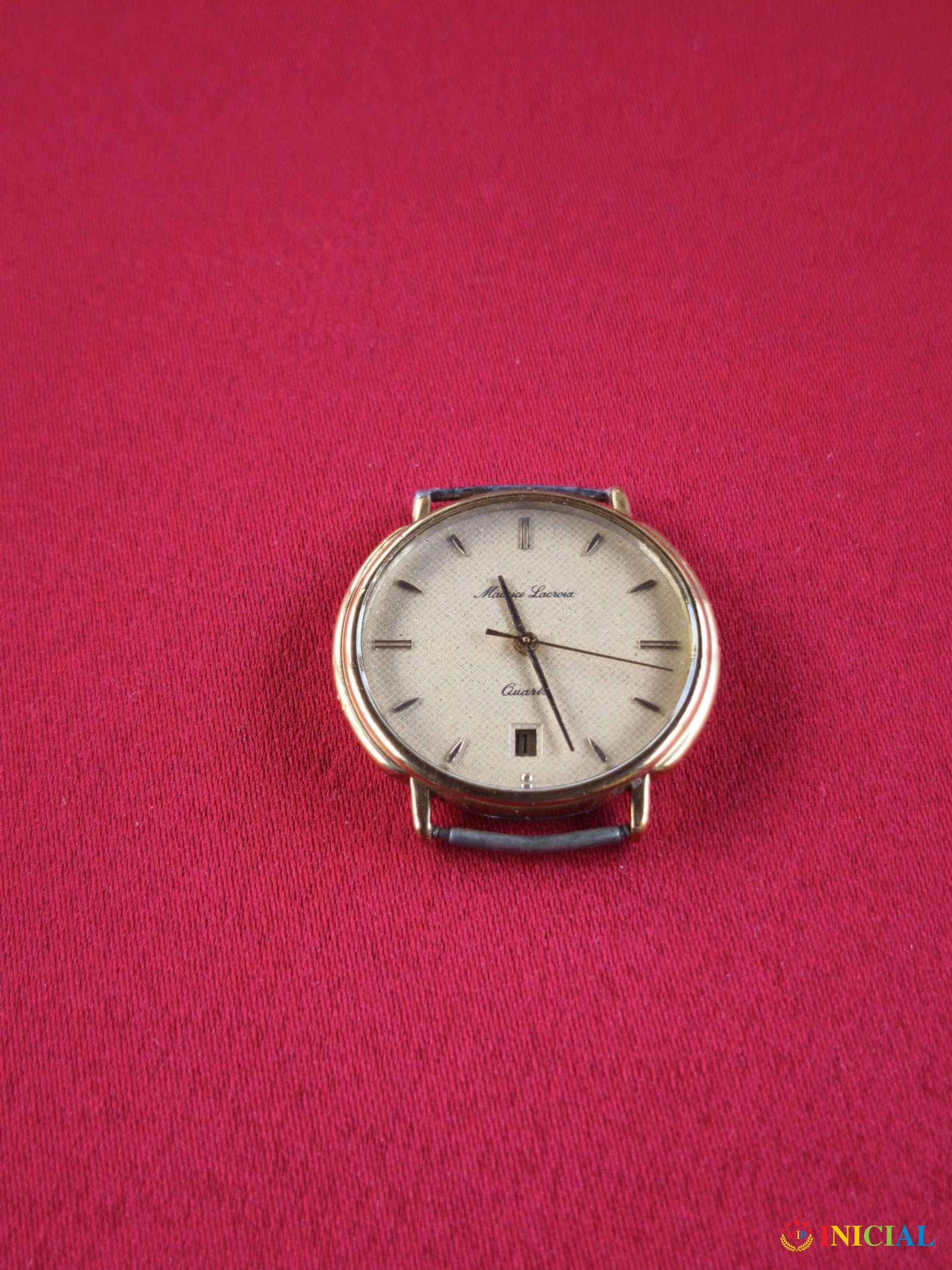 Muski,kvarcni sat Maurice Lacroix kome nedostaje kais i krunica,stiftove treba promeniti,ispravan,made in Swiss.