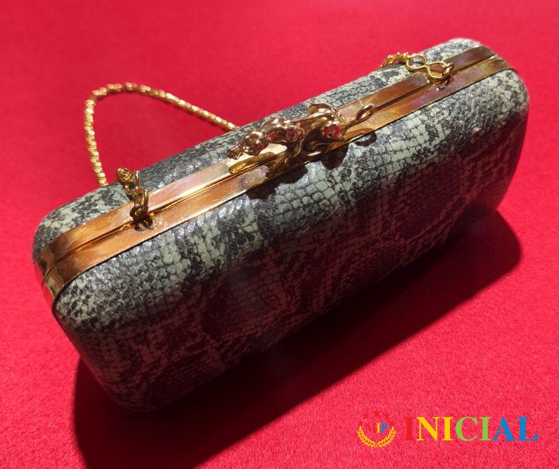 Zenska vintage,svetlucava tasnica sa metalnim lancem,kopcom,dim.28 x 12cm.