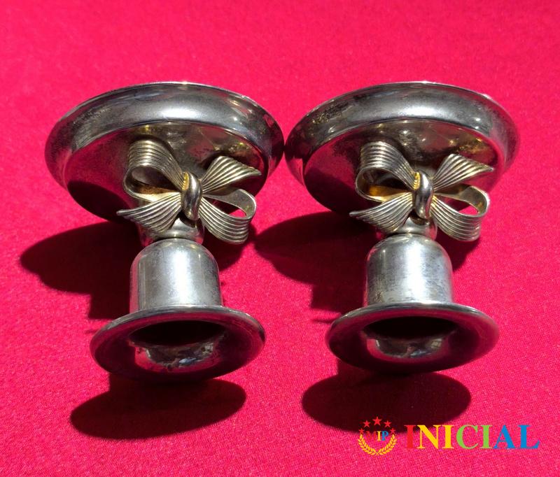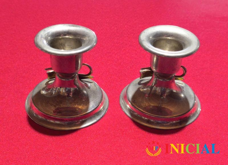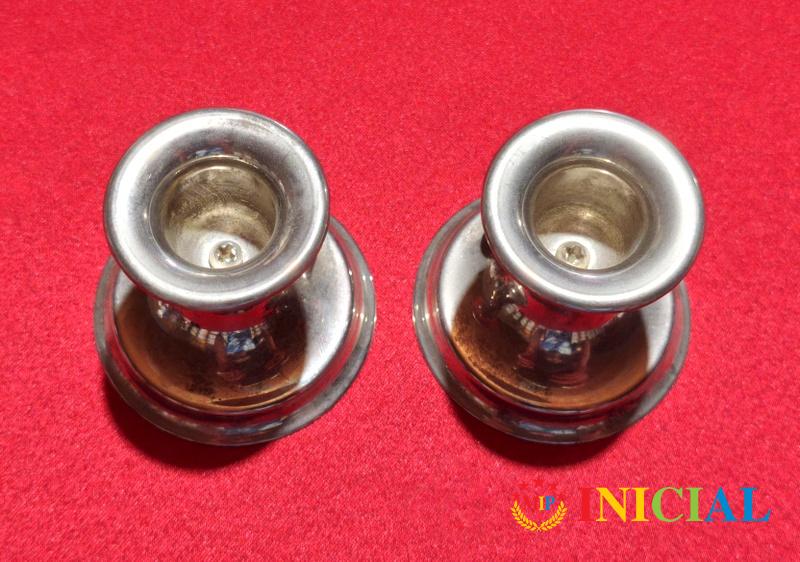 Par svecnjaka sa masnom,kojima treba poliranje,da dobiju sjaj,vis.6,5cm,ulaz za svecu 25mm.
