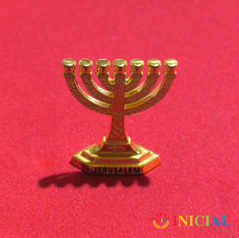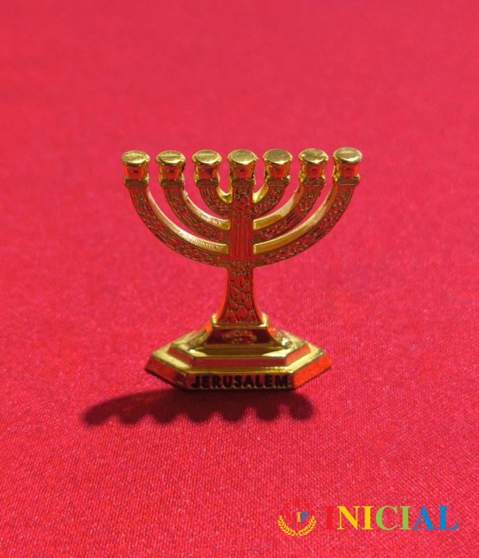 Mini pozlacena menora Jerusalem,vis.4cm.