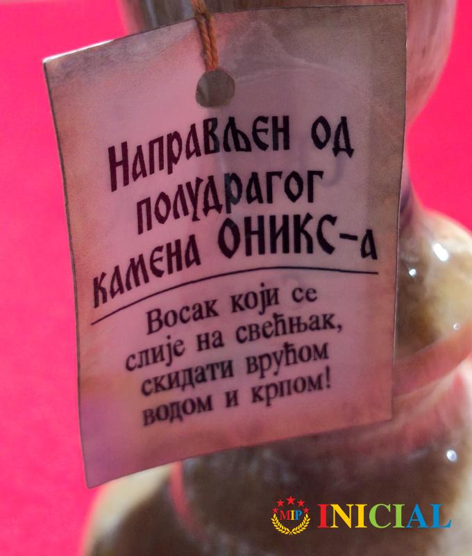 Svecnjak od poludragog kamena Oniksa,vis.16cm,ulaz za svecu 25mm.