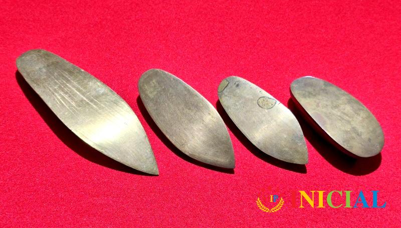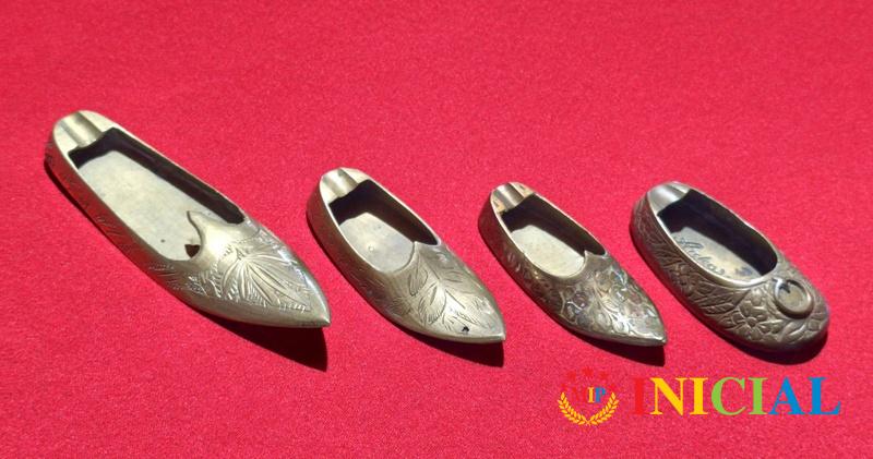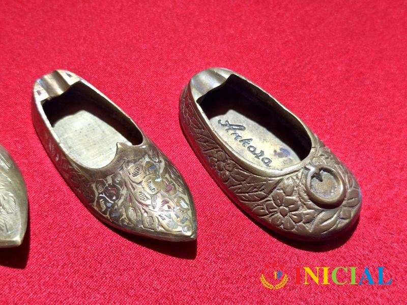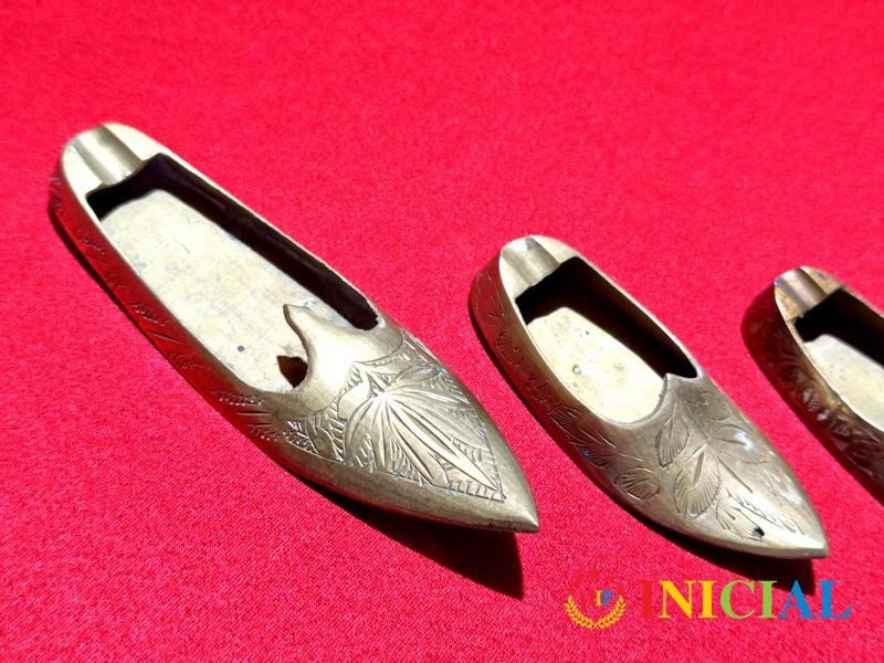 Komplet 4 mesingane opanak - pepeljare,duz. od 8 do 13,5cm,tri su iz Indije,krajnja desno iz Ankare (Turska).