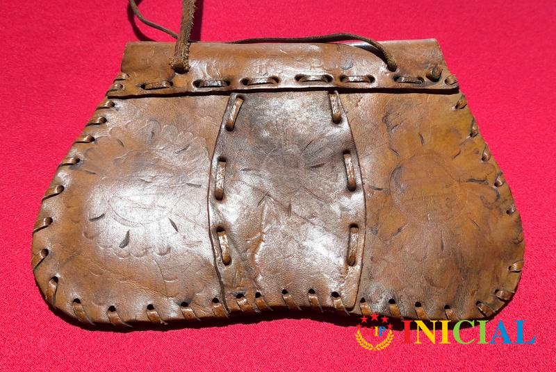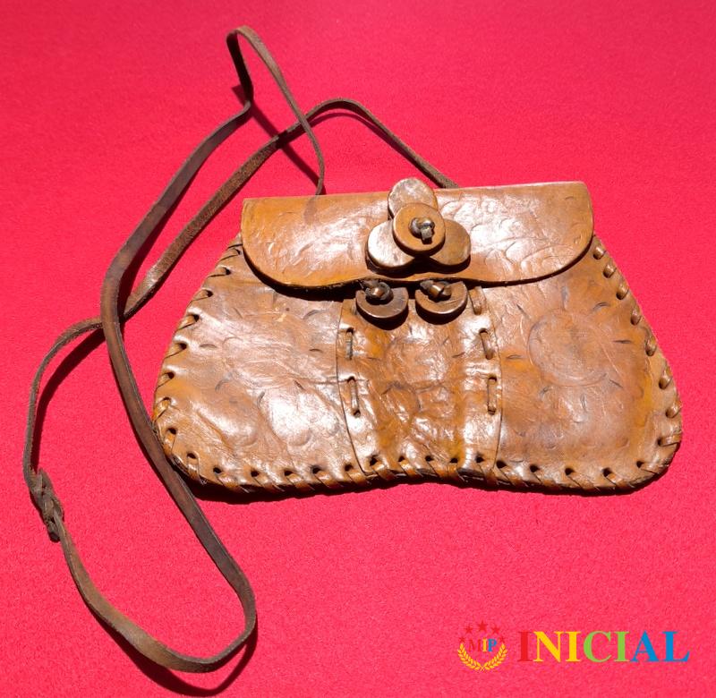 Stara,zenska kozna tasnica,dim.23 x 15cm,duz.kaisa 51cm.