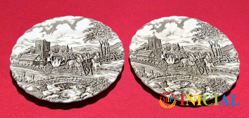 Par ukrasnih tanjira Myott - Kraljevska posta,originalna,rucno gravirana,fina stafordsirska keramika sa svim trajnim bojama,made in England,p - 17,5cm.