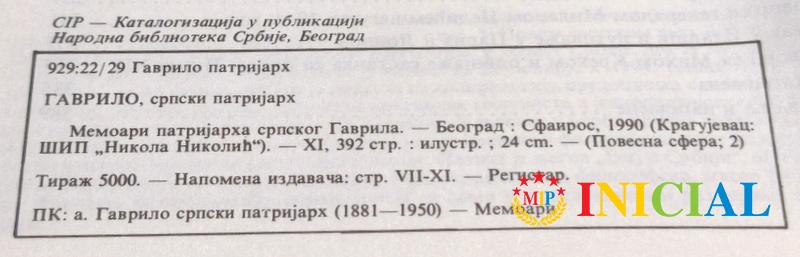 Memoari patrijarha srpskog Gavrila.