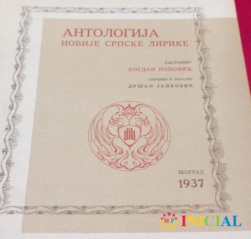 Antologija novije srpske lirike,B.Popovic,Beograd,1937.god,str.296,tvrdi povez,ostecena rikna !