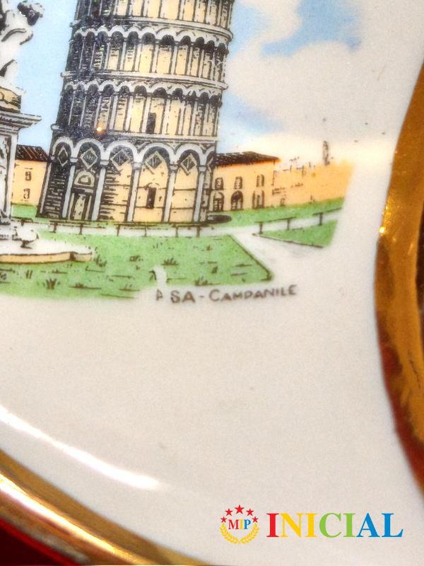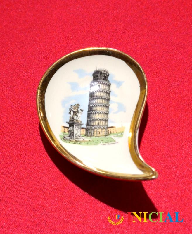 Ukrasni,nemacki,pozlacen tanjiric Krivi toranj u Pizi,dim.9,5 x 6cm.