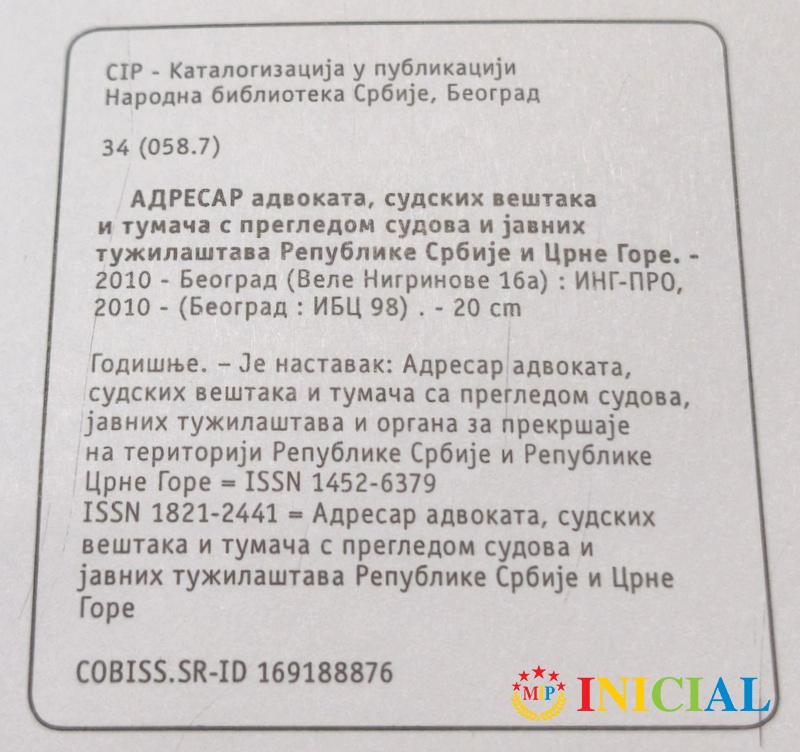 Adresar advokata,sudskih vestaka i tumaca...Republike Srbije i Crne Gore.