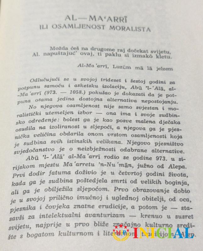 Obvezivanje neobveznim,postovani Al - Ma'arri,Banja Luka,1984.god,str.131.