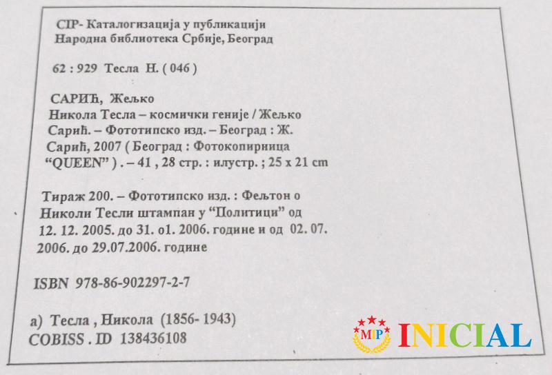 Nikola Tesla Kosmicki Genije,Z.Saric,str.69,fotokopija !