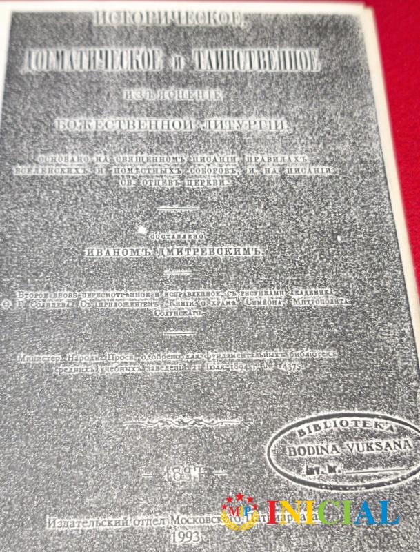 Istorijsko,dogmatsko i sakramentalno objasnjenje Bozanstvene liturgije,I.Dmitrievski,jezik ruski,1993.god,reprint iz 1897.god,str.424,fotokopija !
