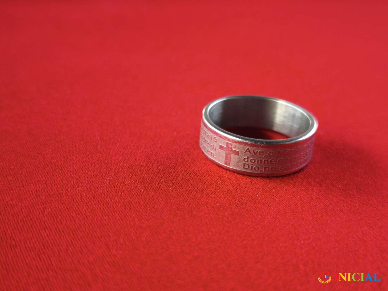 Muški prsten sa religioznim tekstom na latinskom Ave,o Maria,prečnik 21mm.