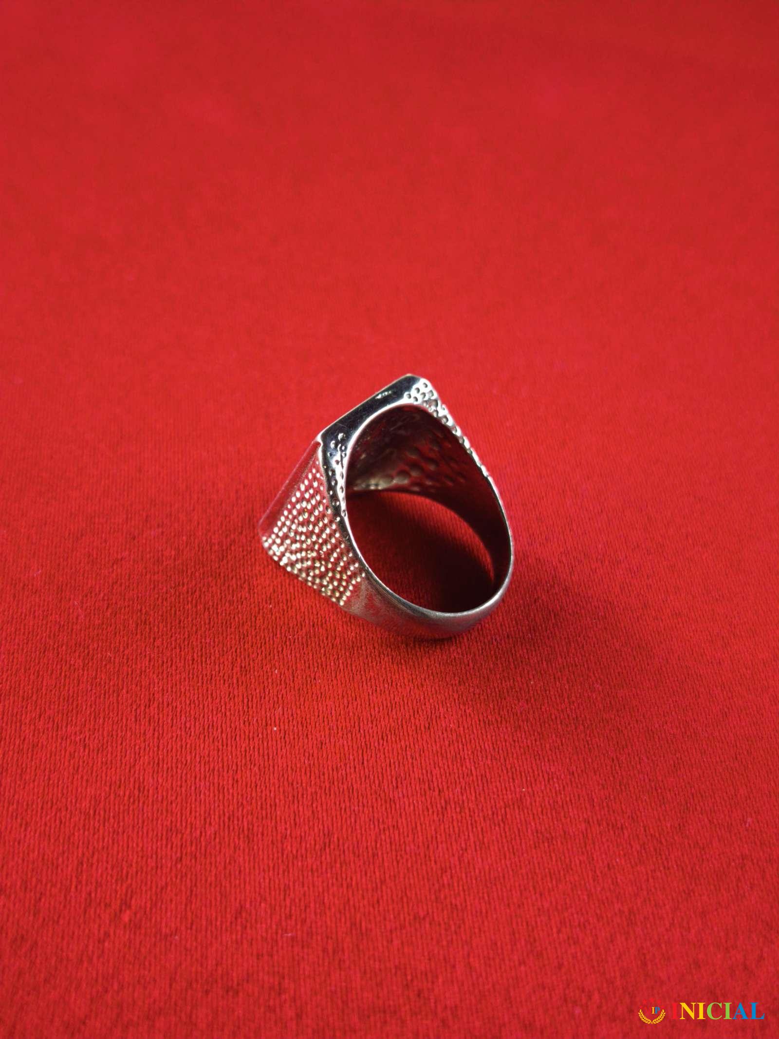 Srebrni prsten sa kamenom crnog Oniksa i likom Indijanca,ima 2 žiga,prečnik 17mm,tezina 3,9gr.