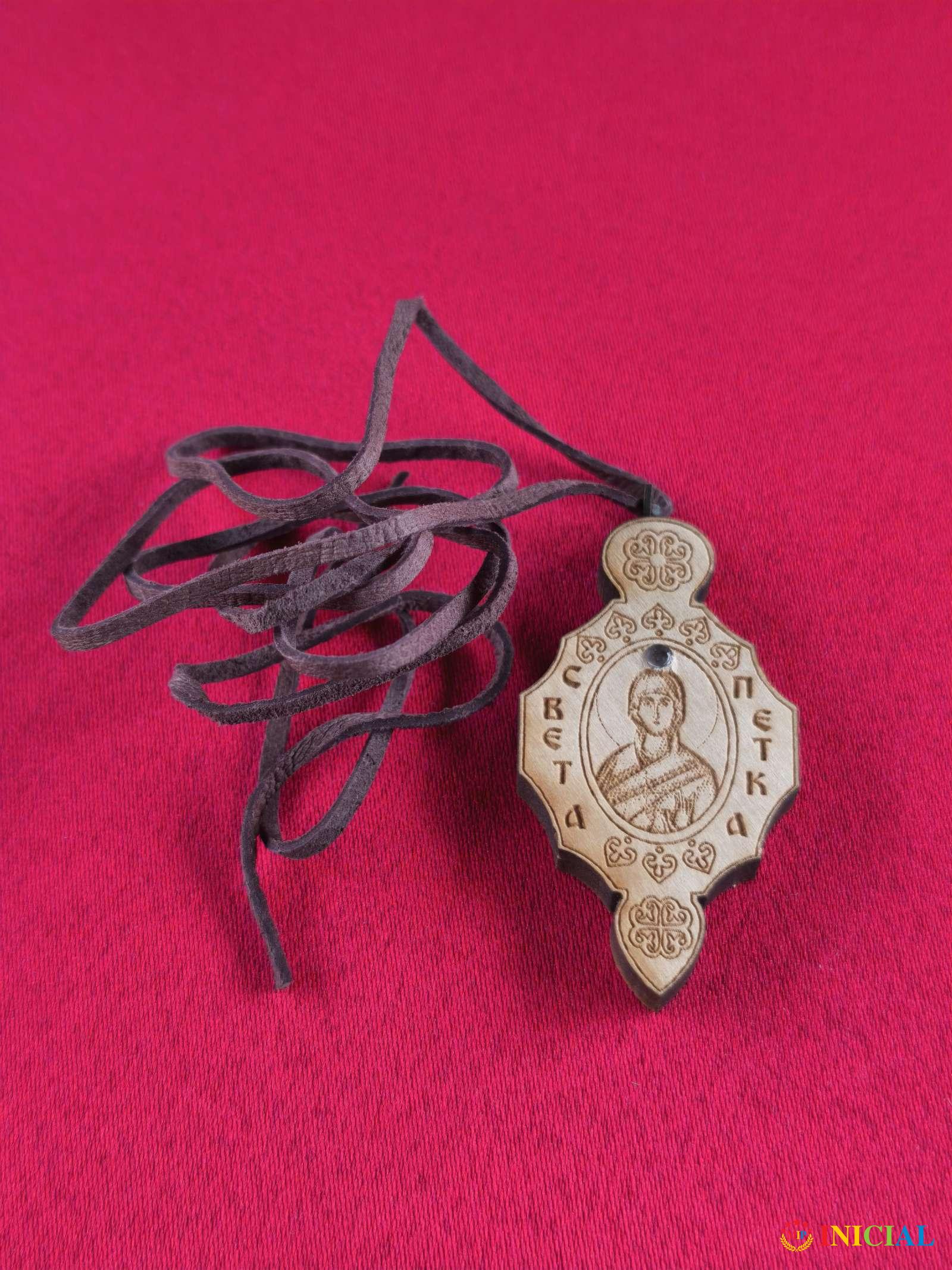 Drveni privezak sv.Petka,duz.50mm,u kutijici.