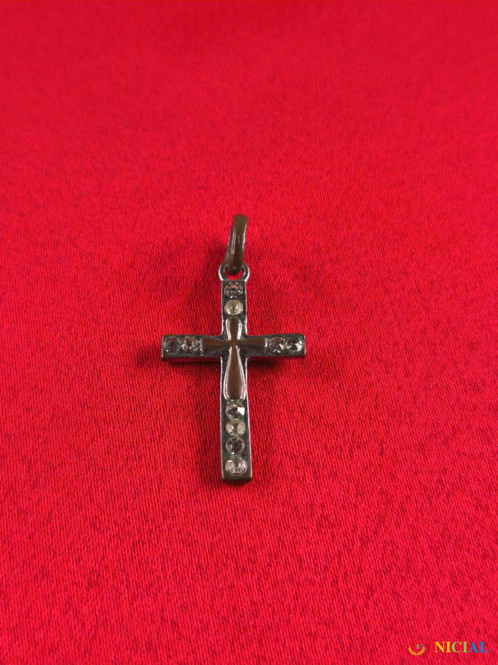 Metalni krstic sa 10 Cirkona,duz.36mm.