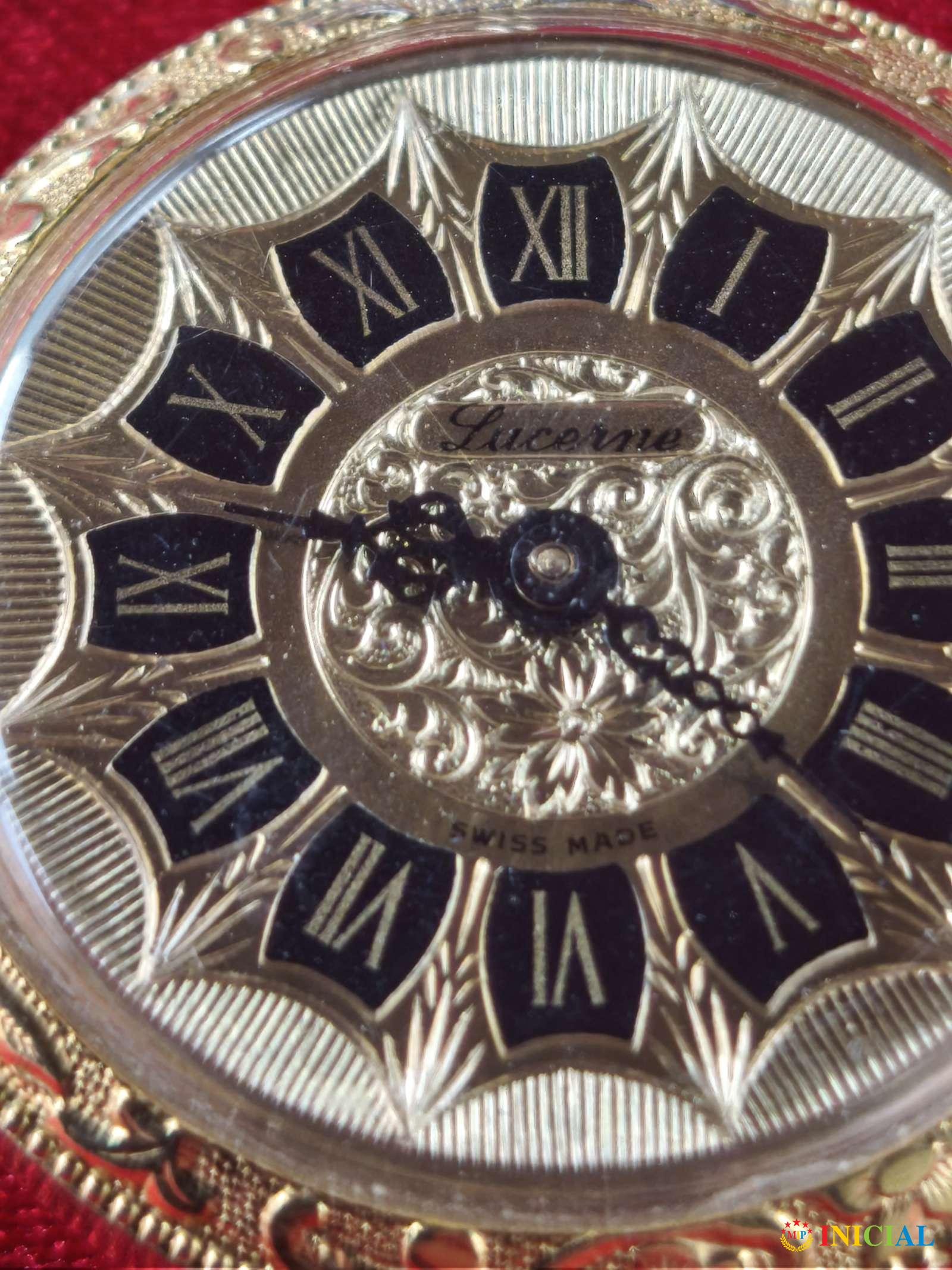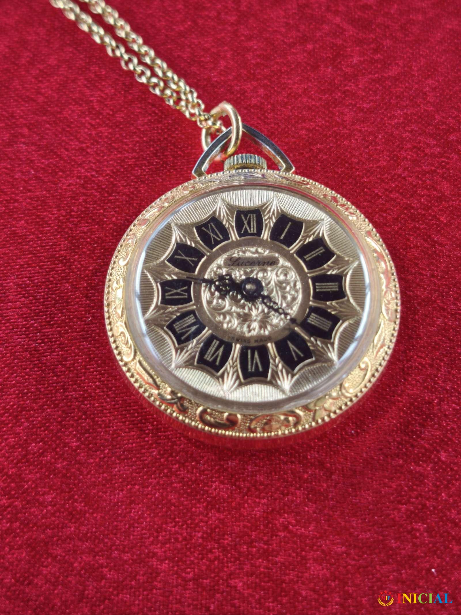 Ženski pozlaćen lancic sat Lucerne,duz.lanca 30cm,prečnik brojčanika 33mm,made in Swiss.