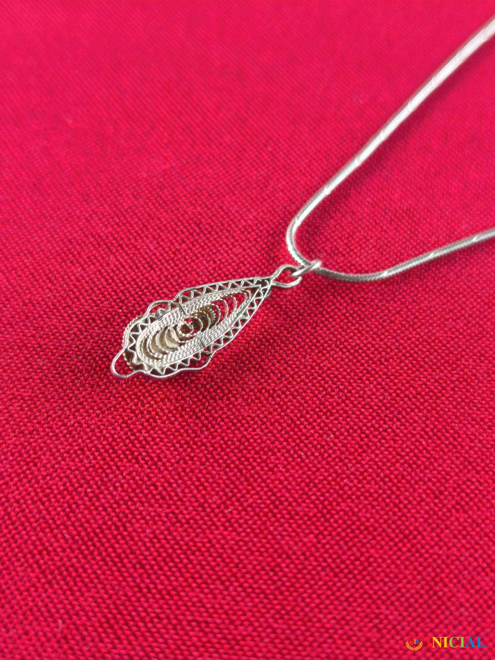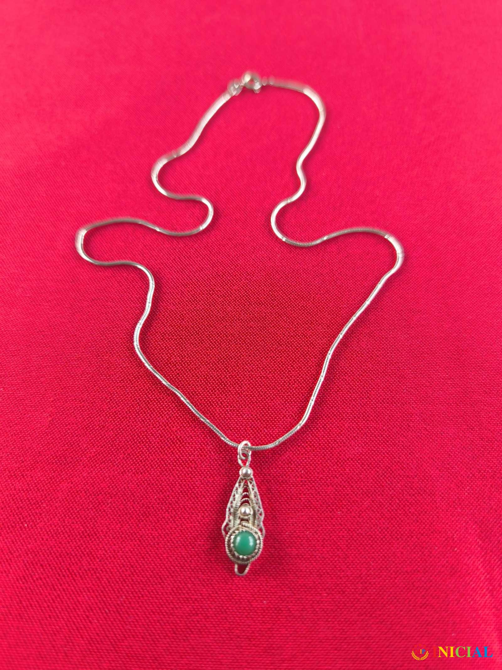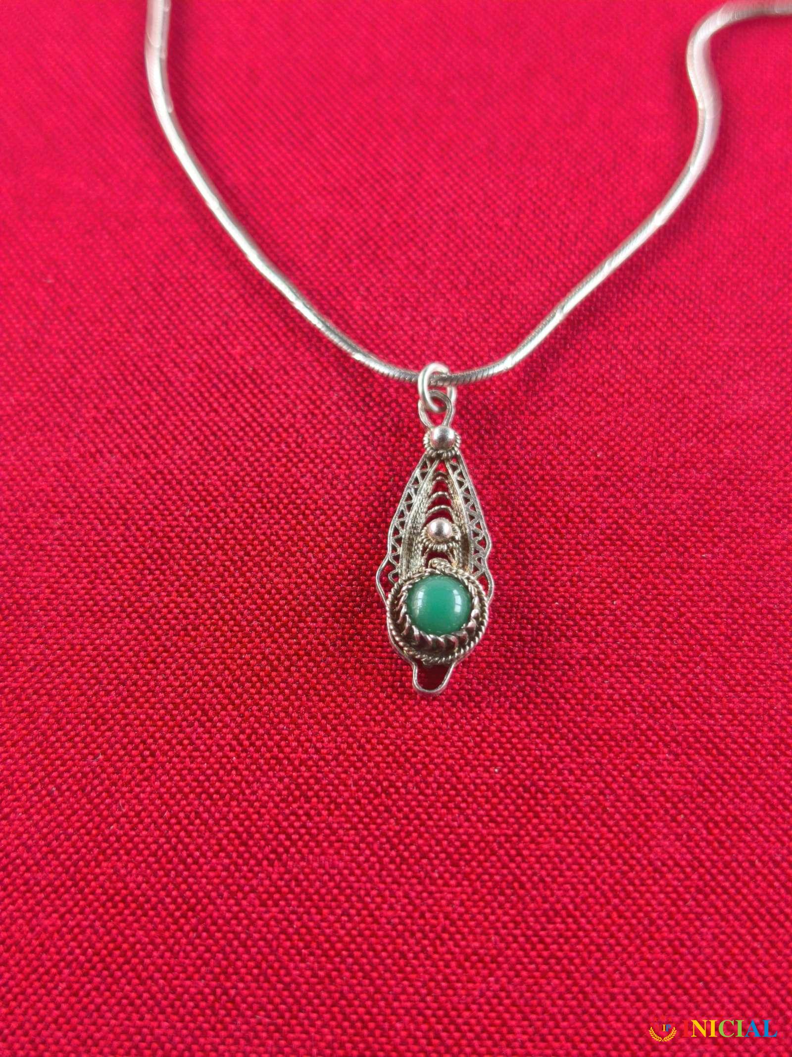 Srebrni lancic sa filigranskim priveskom i kamenom Malahita,tezine 4,9gr,duzina zatvorenog 23,5cm,zig 925.