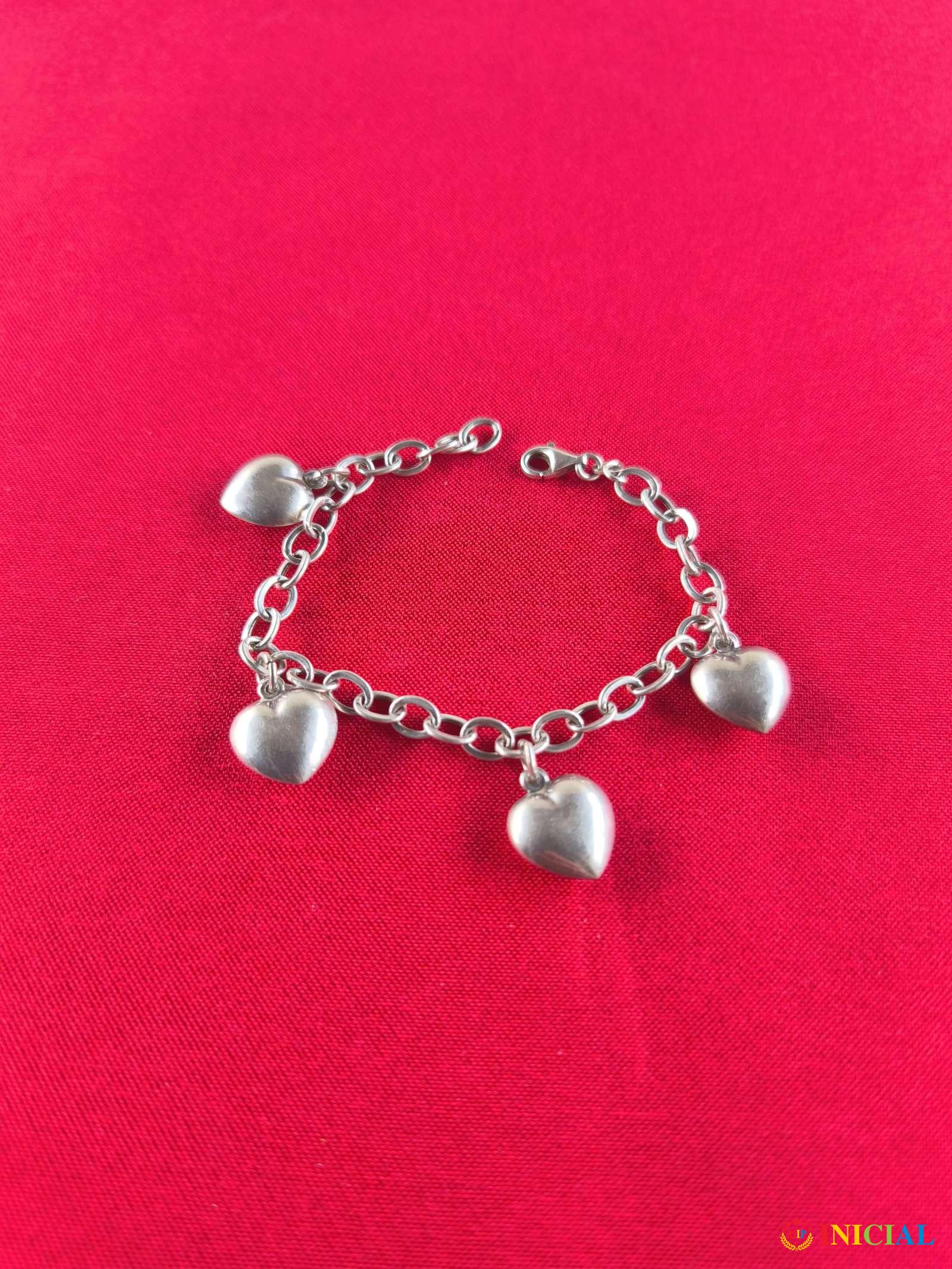 Ženska srebrna narukvica sa 4 srca,zigom 925,duzina otvorene 20cm,tezina 9,2gr.