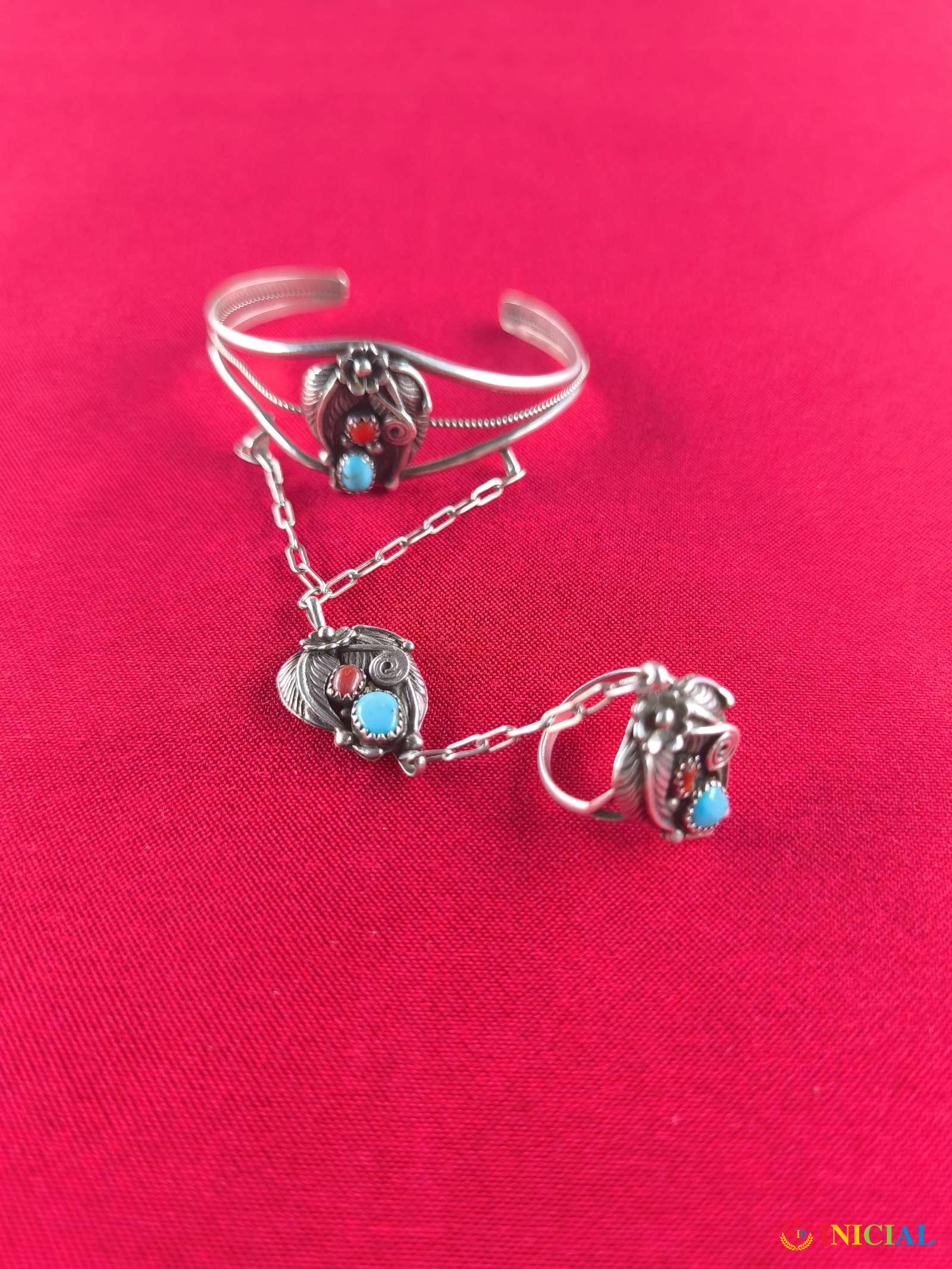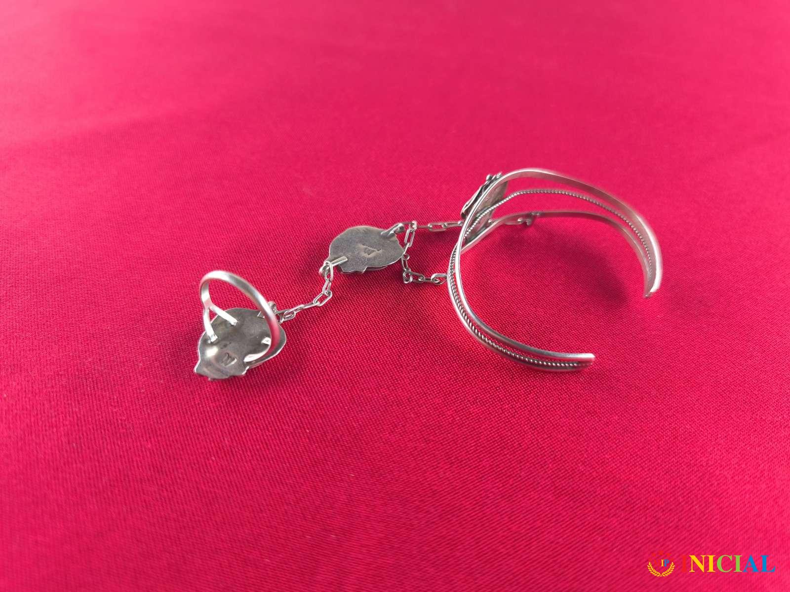 Stara zenska srebrna narukvica i prsten sa 6 poludragih kamena,i po 2 ziga,precnik prstena 18mm,tezina 22gr.