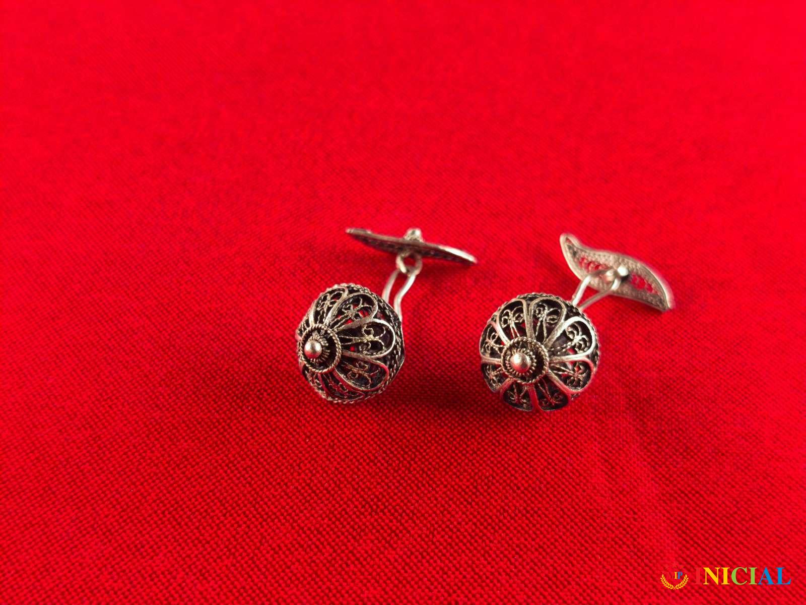 Par dugmadi za manzetne od filigranskog srebra,tezina 6gr,precnik 14mm.