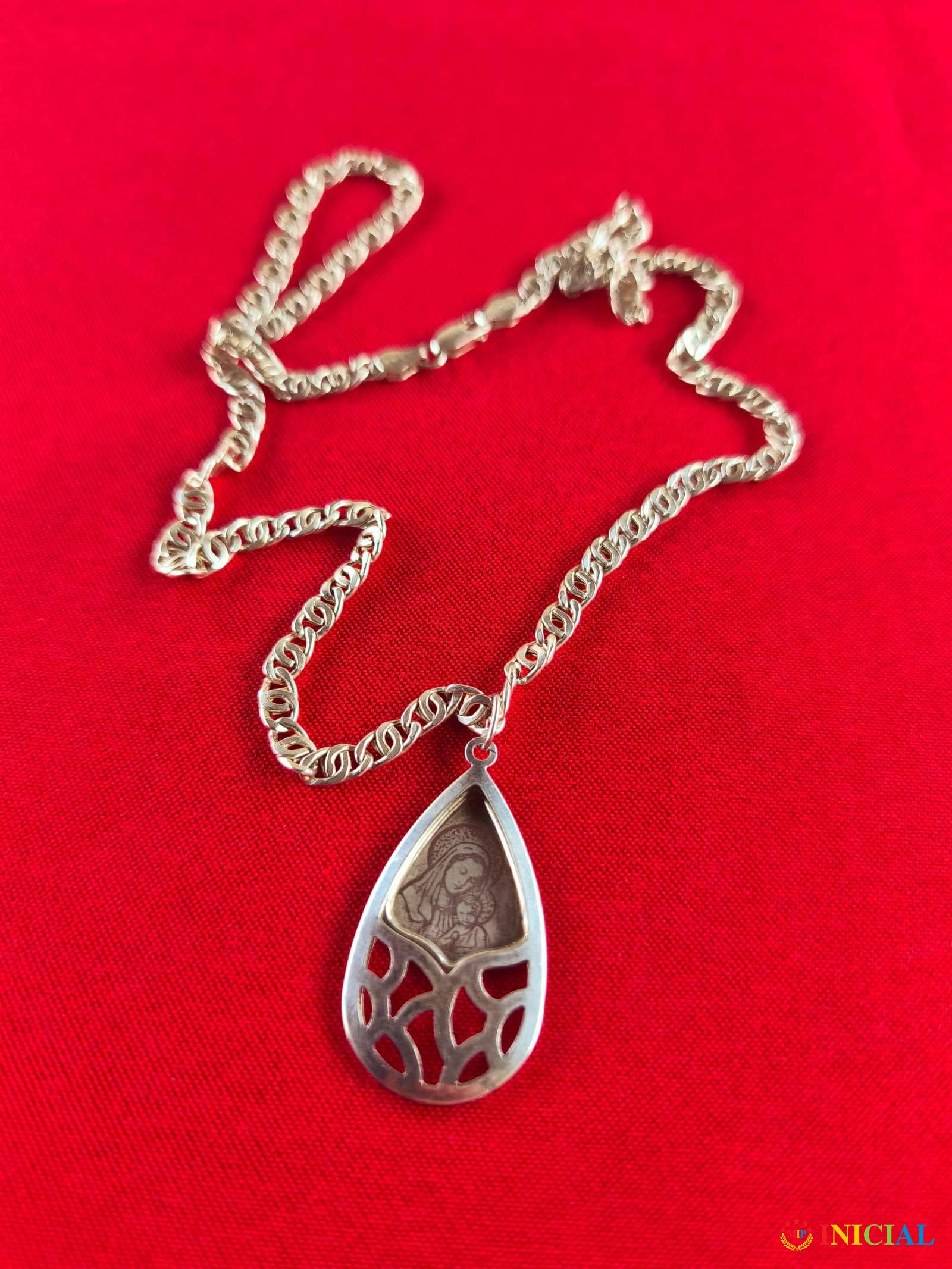 Srebrna ogrlica sa likom Device Marije i malim Isusom,zig 925,duzina 30cm(bez priveska 40x22mm),tezina 14,8gr,made in Italy