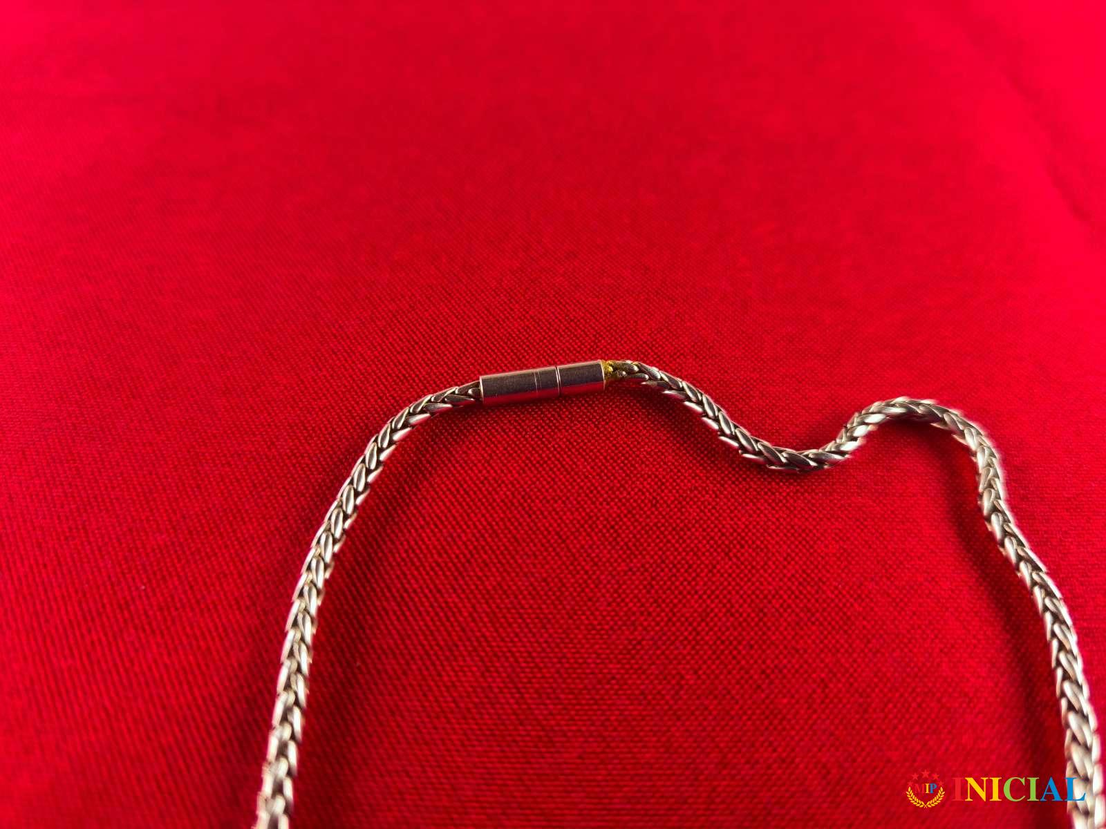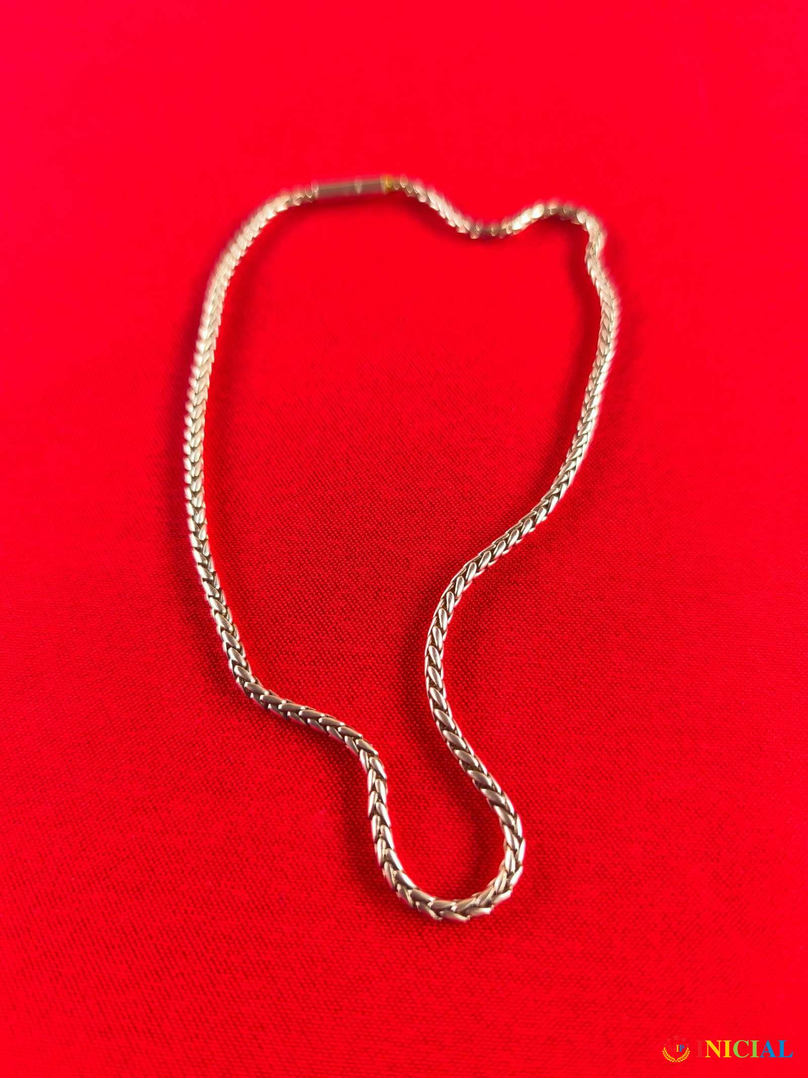 Srebrna okrugla ogrlica,nema zig,tezina 16,5gr,duzina otvorene 41cm.