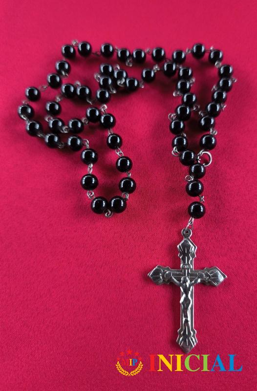 Katolicka brojanica sa 50 + 3 kamena crnog Oniksa,duz.45cm.