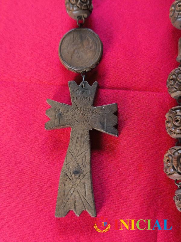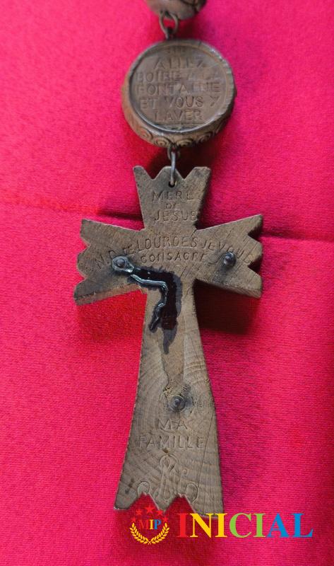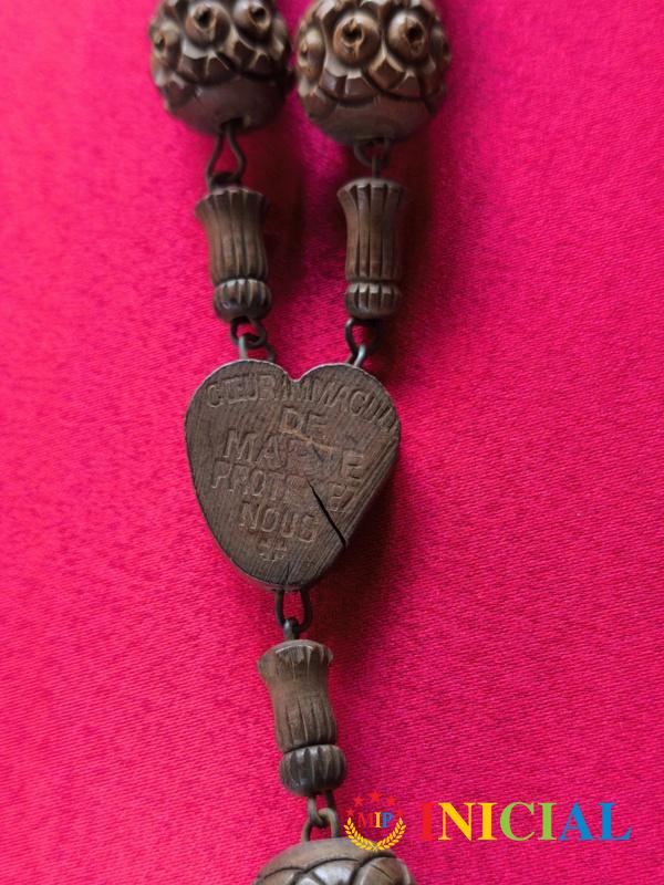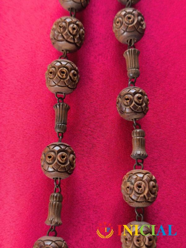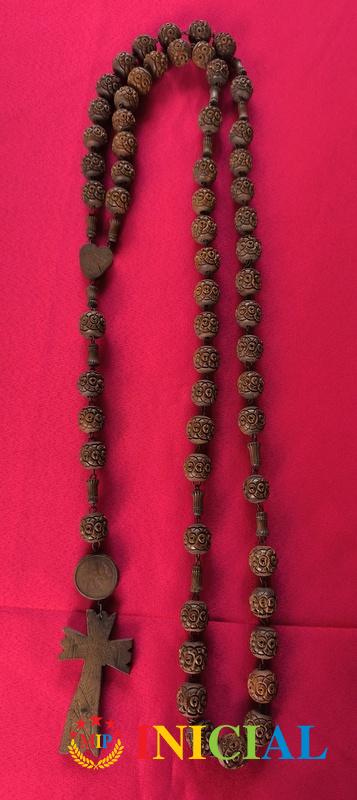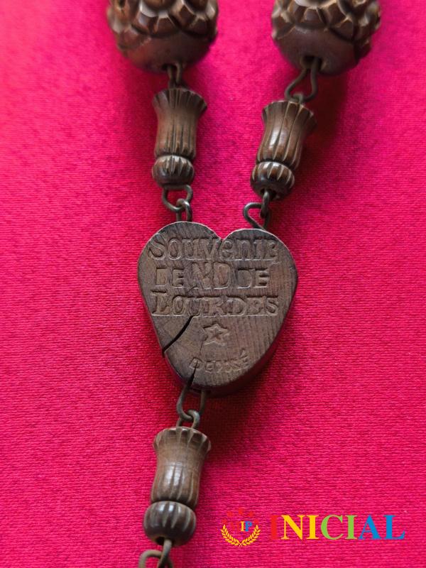 Francuska katolicka brojanica iz Lurda,sa drvenim rezbarenim kuglicama (p-20mm),duz.115cm,na krsticu je miro.