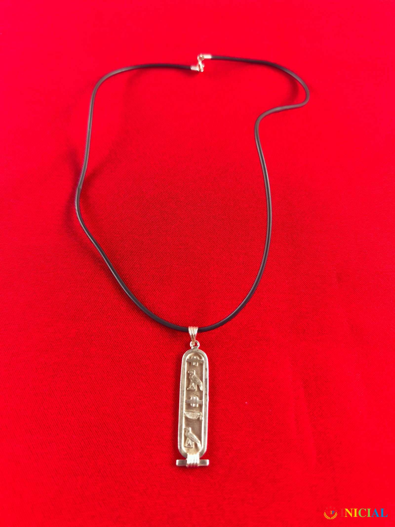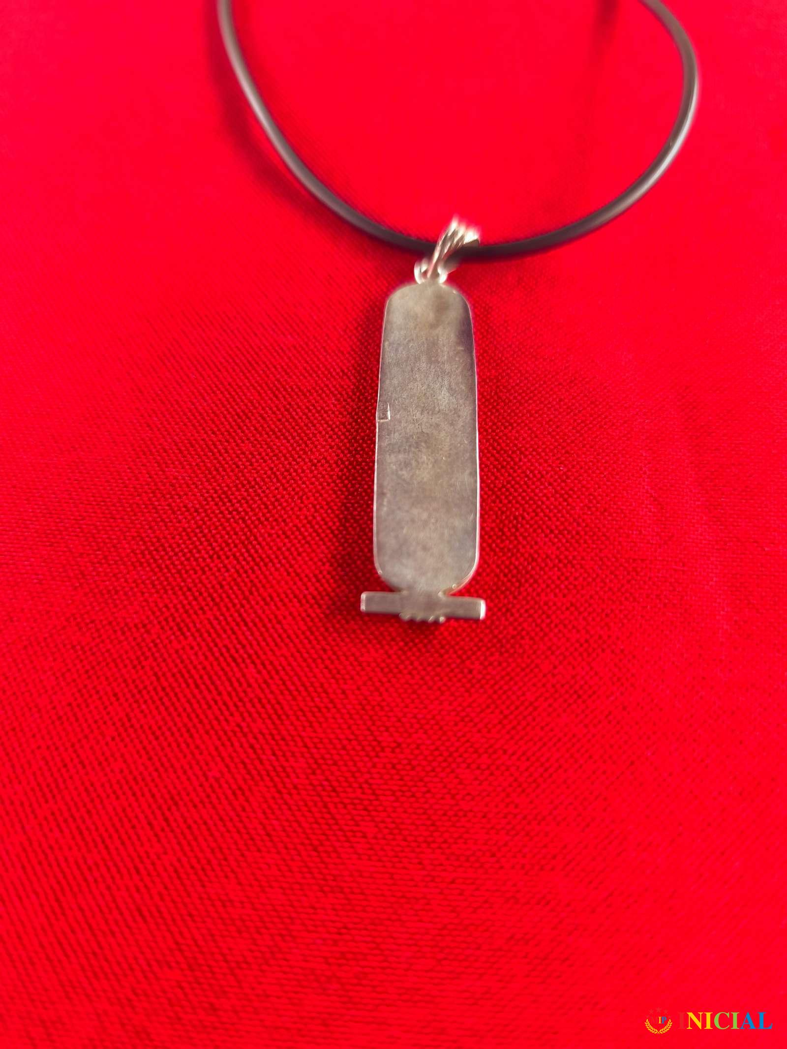 Ogrlica sa srebrnim,egipatskim priveskom (46 x10mm),ima 3 ziga,tezina 7,3gr,duzina zatvorene 24,5cm.